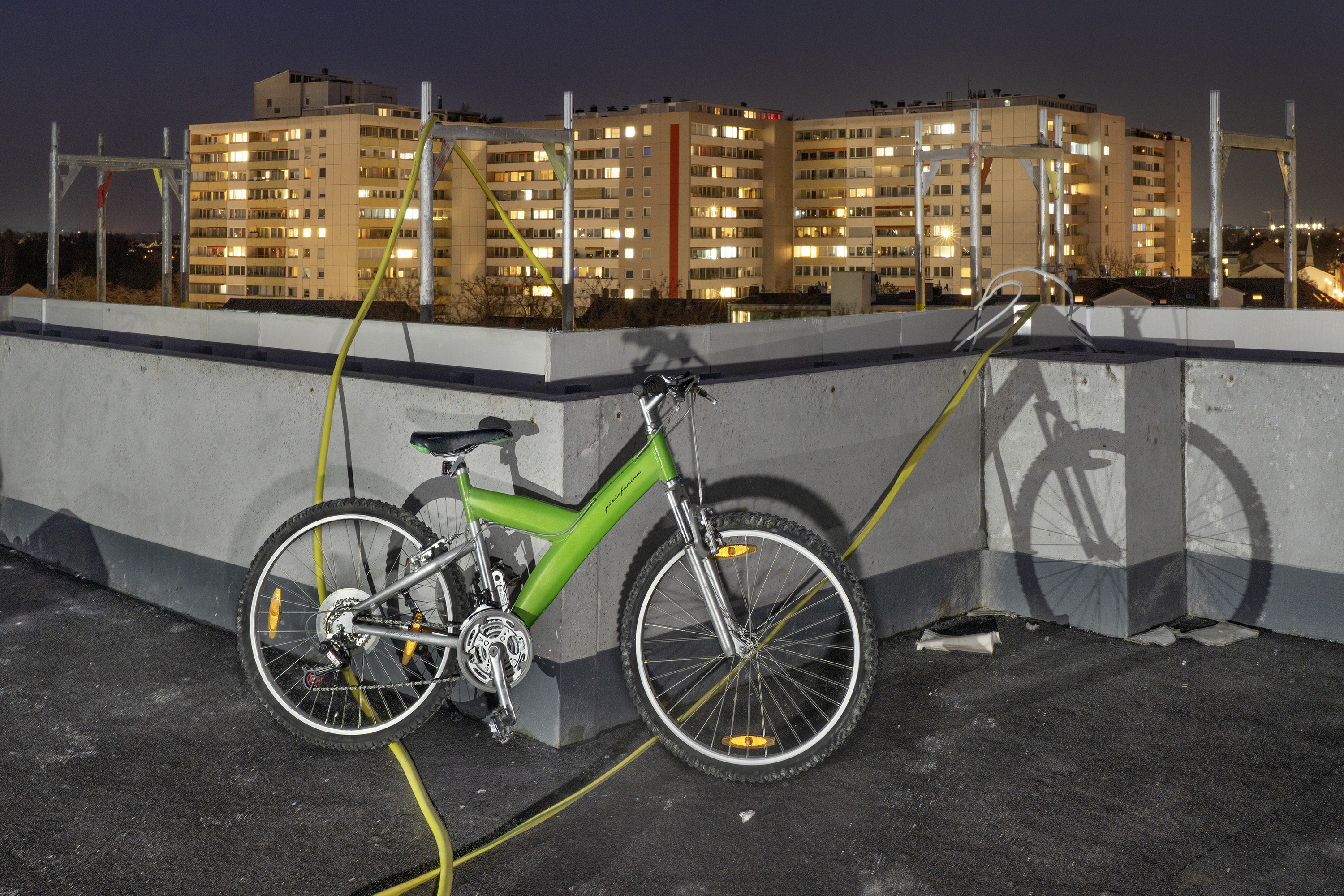 An 255 unterschiedlichen Orten kam das Rad als öffentliche Skulptur zum Stehen und verkörperte im Zusammenspiel mit urbanen Übergangsszenarien einen Moment der Schönheit im Wechselspiel zwischen Vergangenheit, Gegenwart und Zukunft.