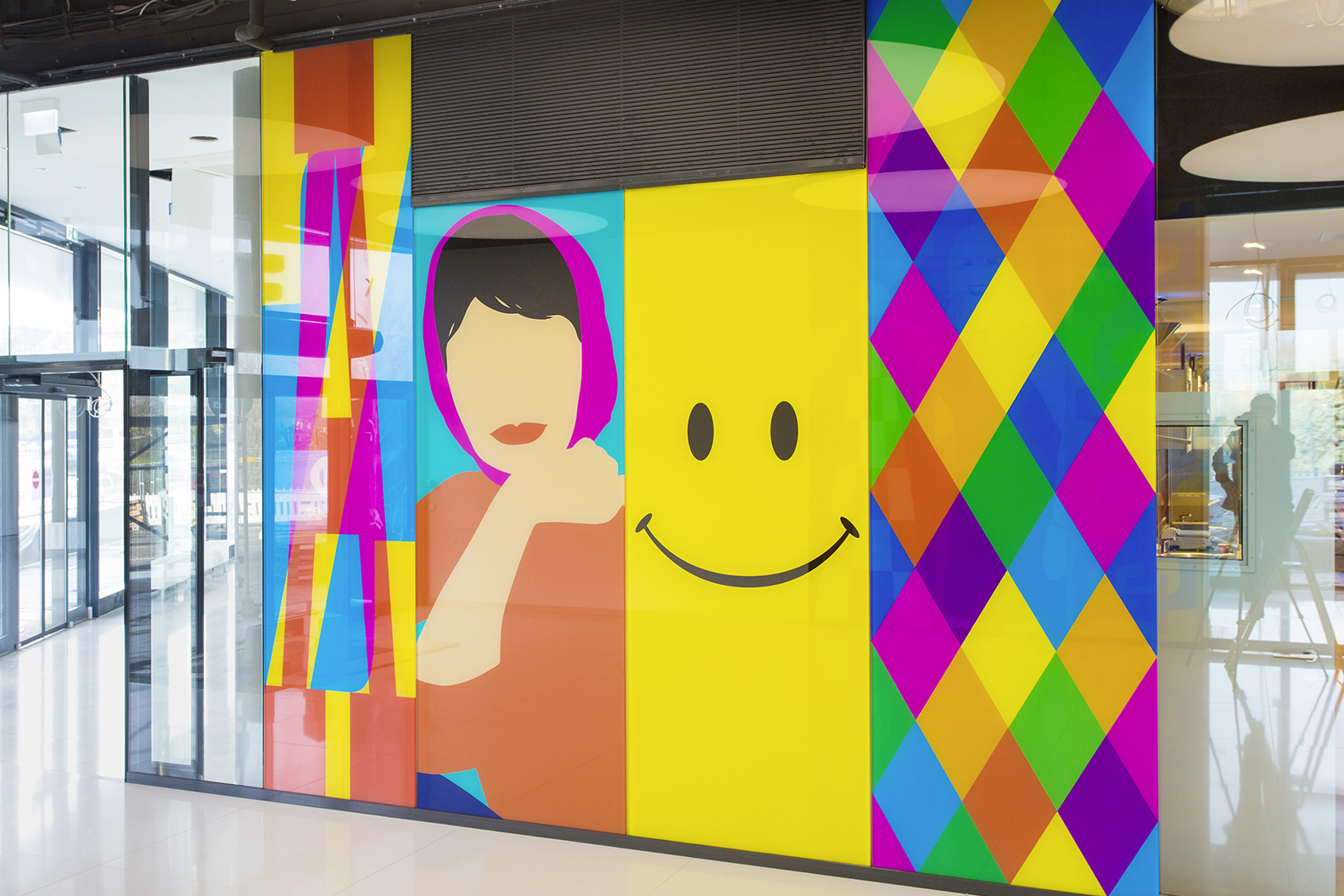 Verspiegelte Siebdrucke hinter Glas