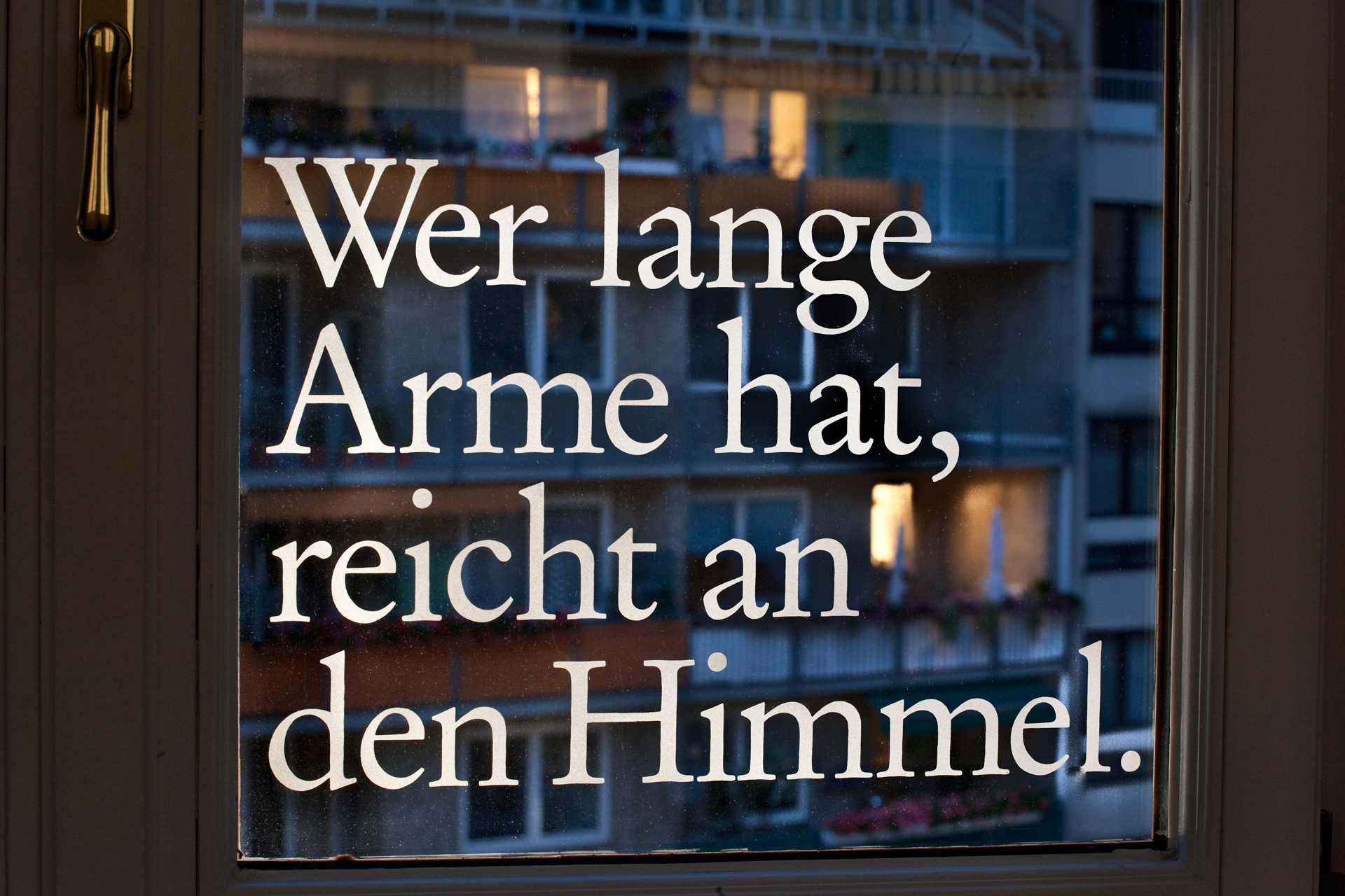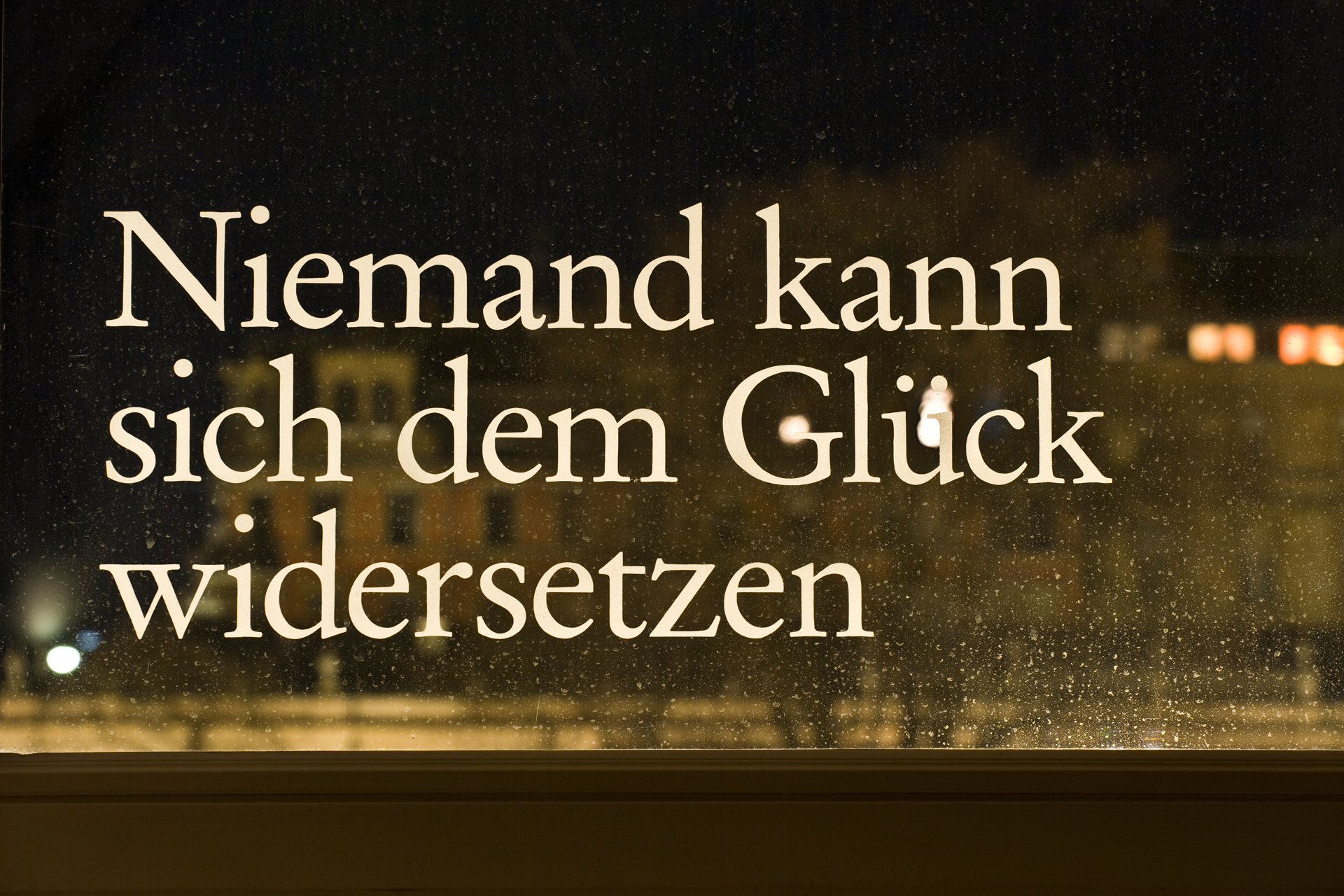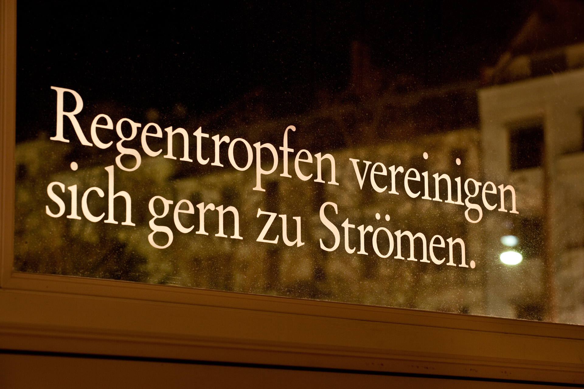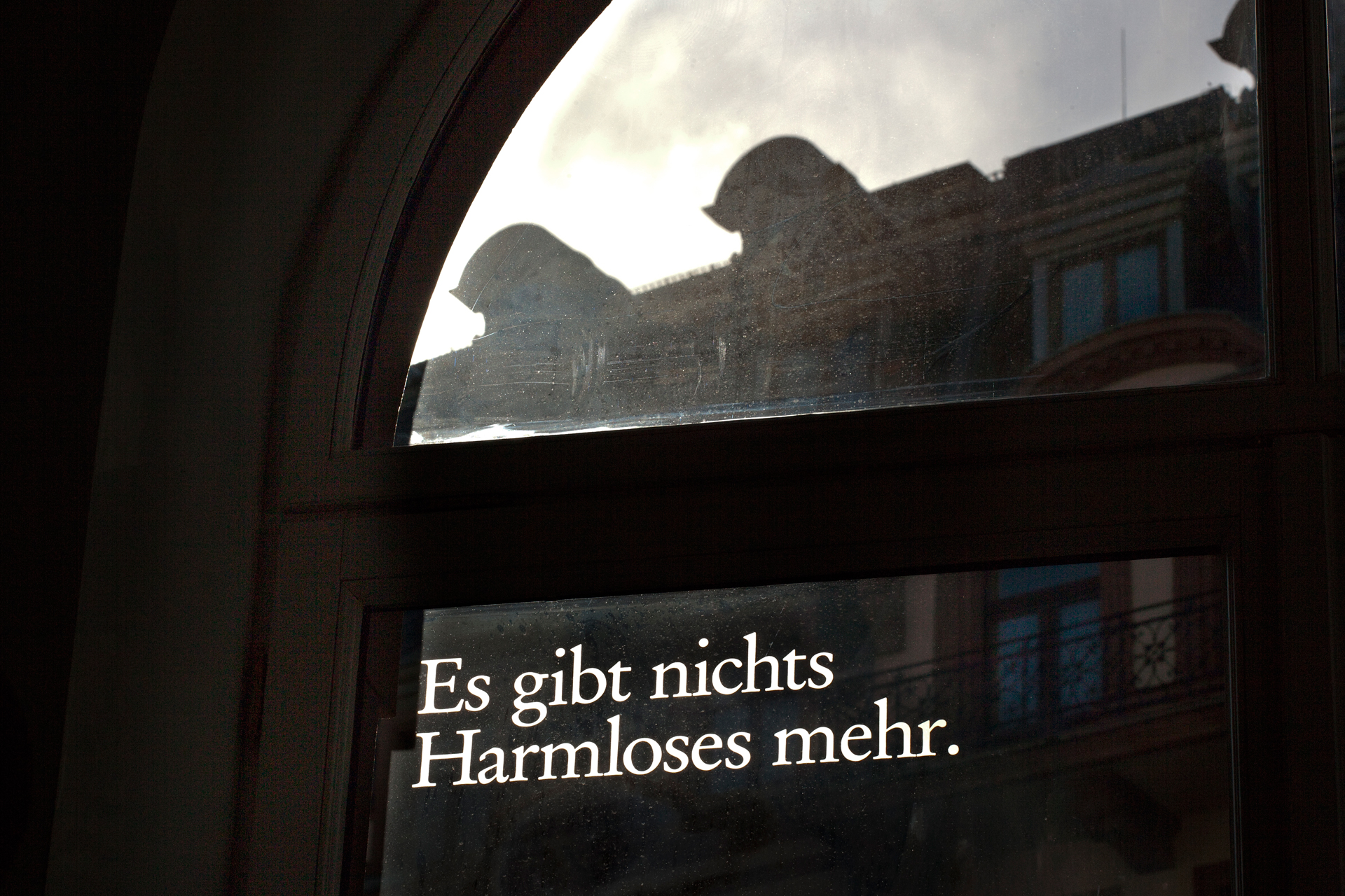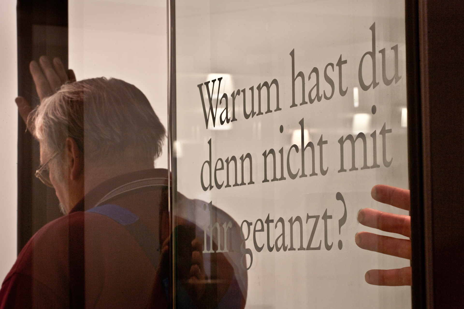 Die Texte wurden mittels Sandstrahltechnik auf die Glasscheiben aufmattiert.
