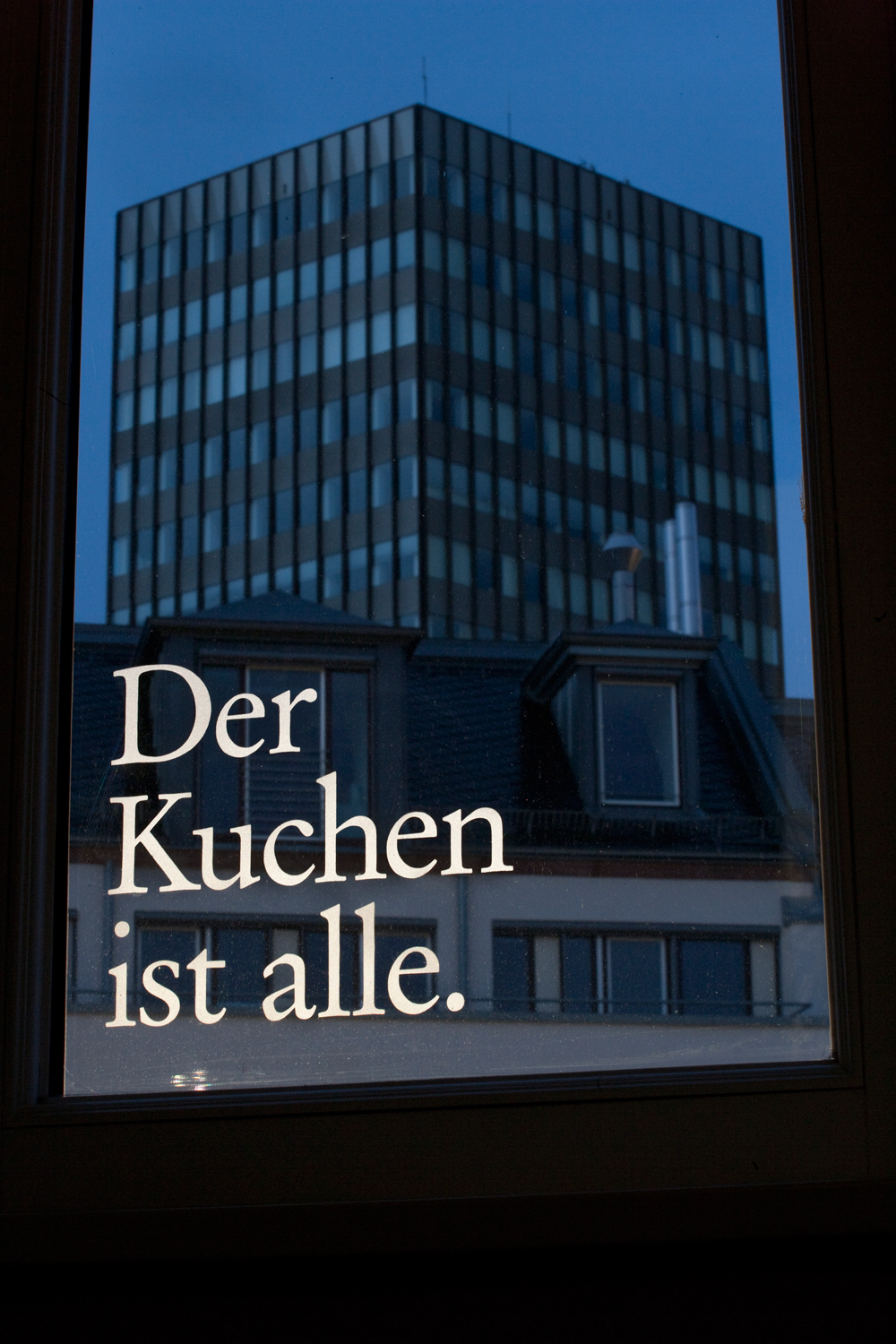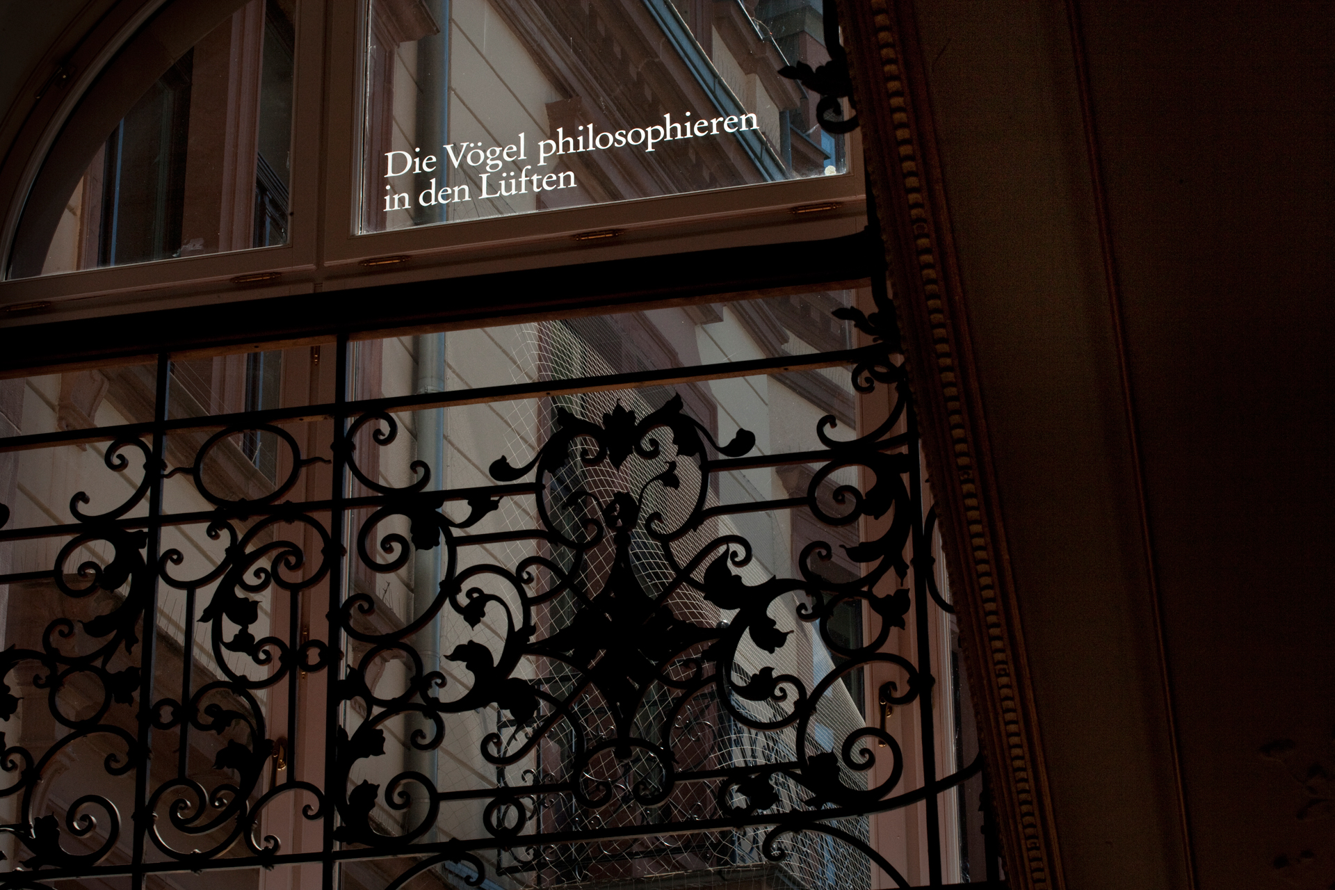Die Aphorismen fungieren als Untertitel zu den sich ständig verändernden Ausblicken aus dem Gebäude. Inhaltlich beschäftigen sie sich mit Themenfeldern wie Innen/Außen, Endlich/Unendlich, Einzelner/Masse, Mächtig/Ohnmächtig, Intuitiv/Rational.