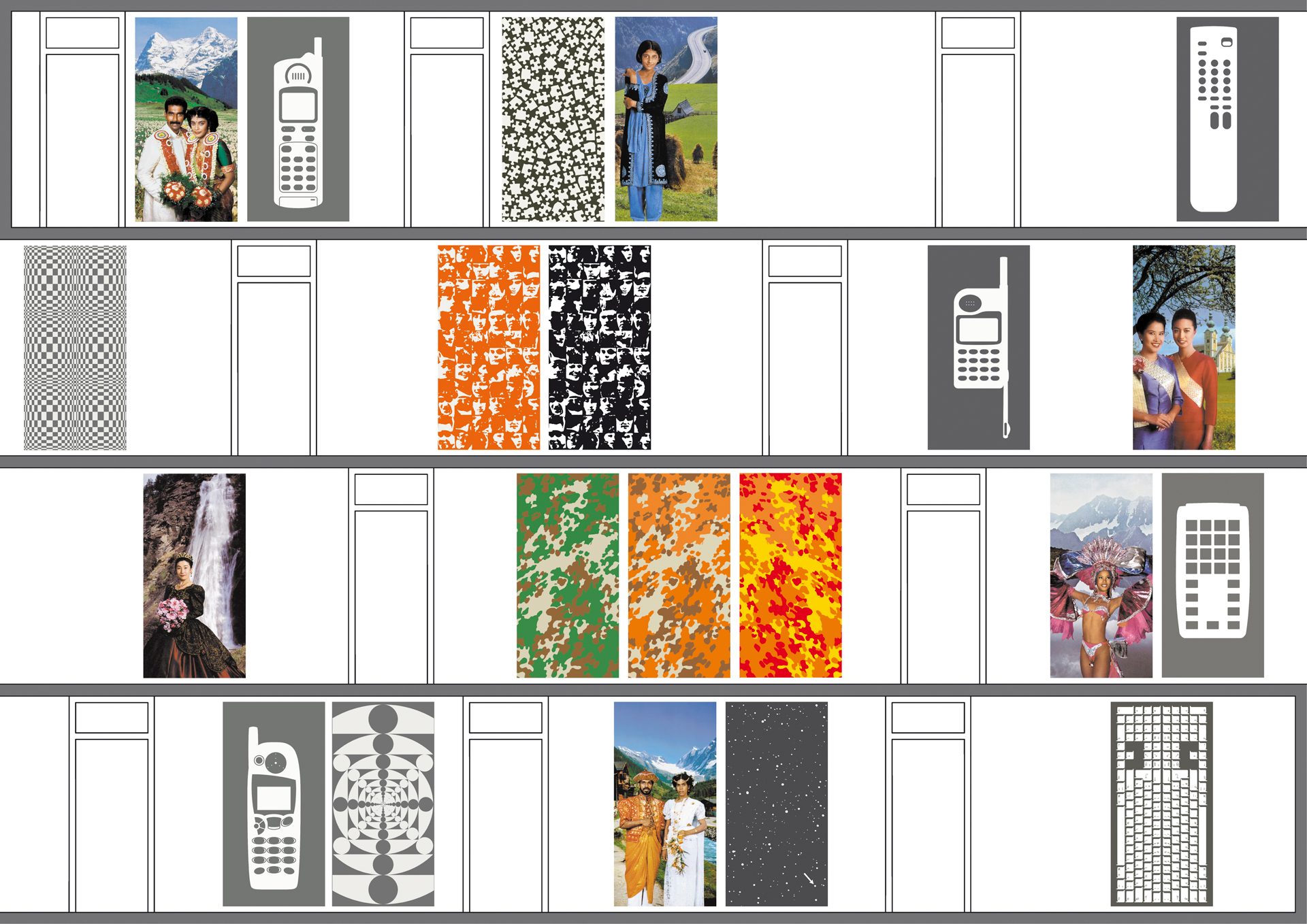 Um den Mitarbeitern einen gewissen Schutz zu ermöglichen, können diese aus einem grossen Fundus bedruckte Tücher auswählen und mittels zweier Saugnäpfe an den transparenten Wänden ihrer Büros befestigen.