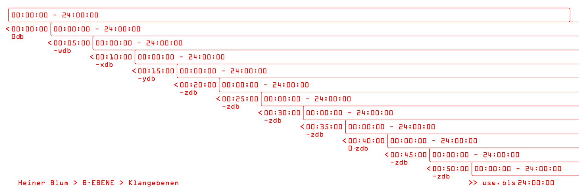 B-Ebene verweist auch auf Klang als Material des Rundfunks. Die Arbeit reflektiert die zahlreichen im Laufe von Jahren entstandenen Tonschichten, die im Rundfunkgebäude übereinander gelagert gleichzeitig existieren und durch die Zuordnung von Zeit und Ort der Wiedergabe einen speziellen Sinn entfalten.