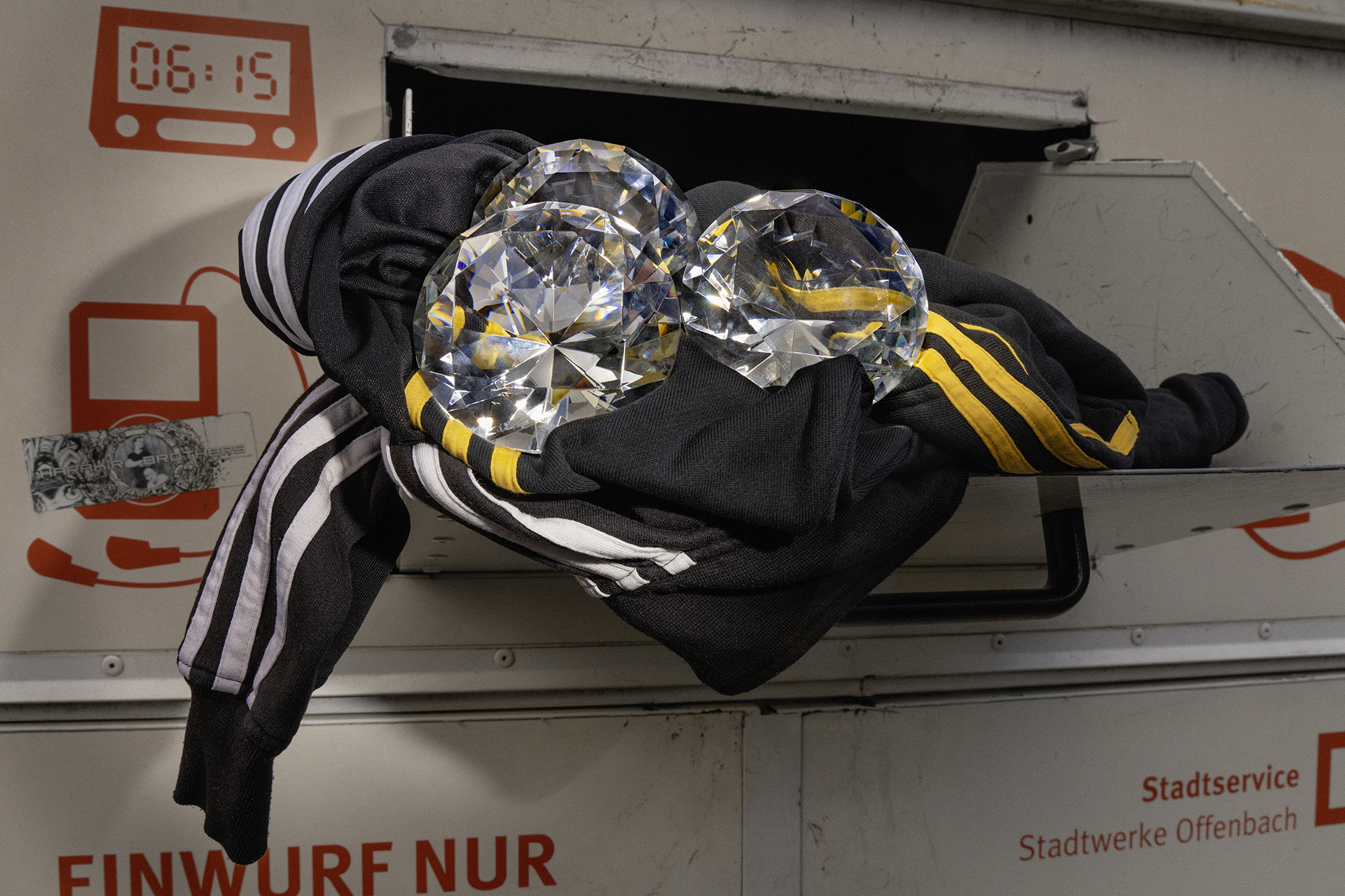 Mit dem Diamant / Museum Of Urban Culture entwickelte sich im und um das Museum herum eine Suche nach ausgesetzten Diamanten. Sie fanden sich in unterschiedlichten Größen und Farben in den Winkeln und Ecken des Gebäudes und in den Straßen und Plätzen der Offenbacher Innenstadt.