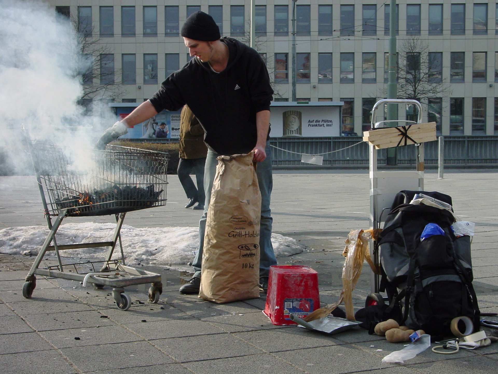 Es entstand ein Ort, so facettenreich und widersprüchlich wie die Gegenwart: aktiv und kontemplativ, dynamisch und gemütlich, flexibel und vertraut, international und lokal, originell und trivial, beschleunigt und verlangsamt. Ergänzt wurde das Programm durch zahlreiche Außen-Aktivitäten: So konnten die Besucher vor dem Gebäude in einer gemeinsamen Aktion einen Berg aus Schnee errichten; die beiden Künstler Valentin Beinroth und Florian Jenett sorgten für großes Aufsehen, in dem sie in der Frankfurter City aus schwarzem Wasser gefrorene Pistolen auslegten.