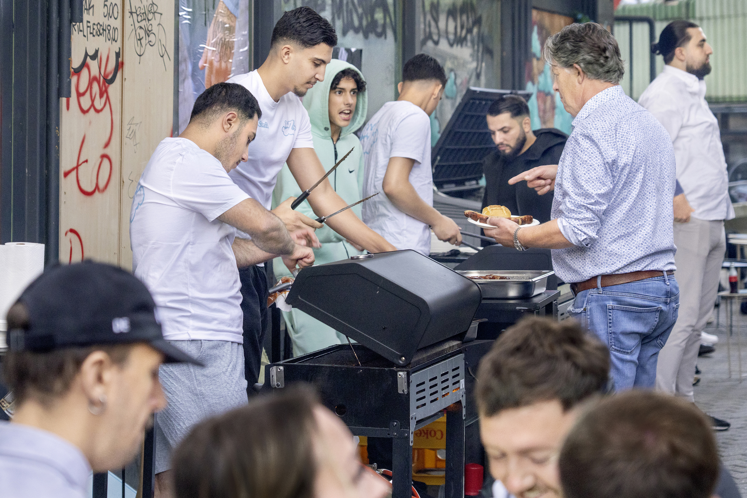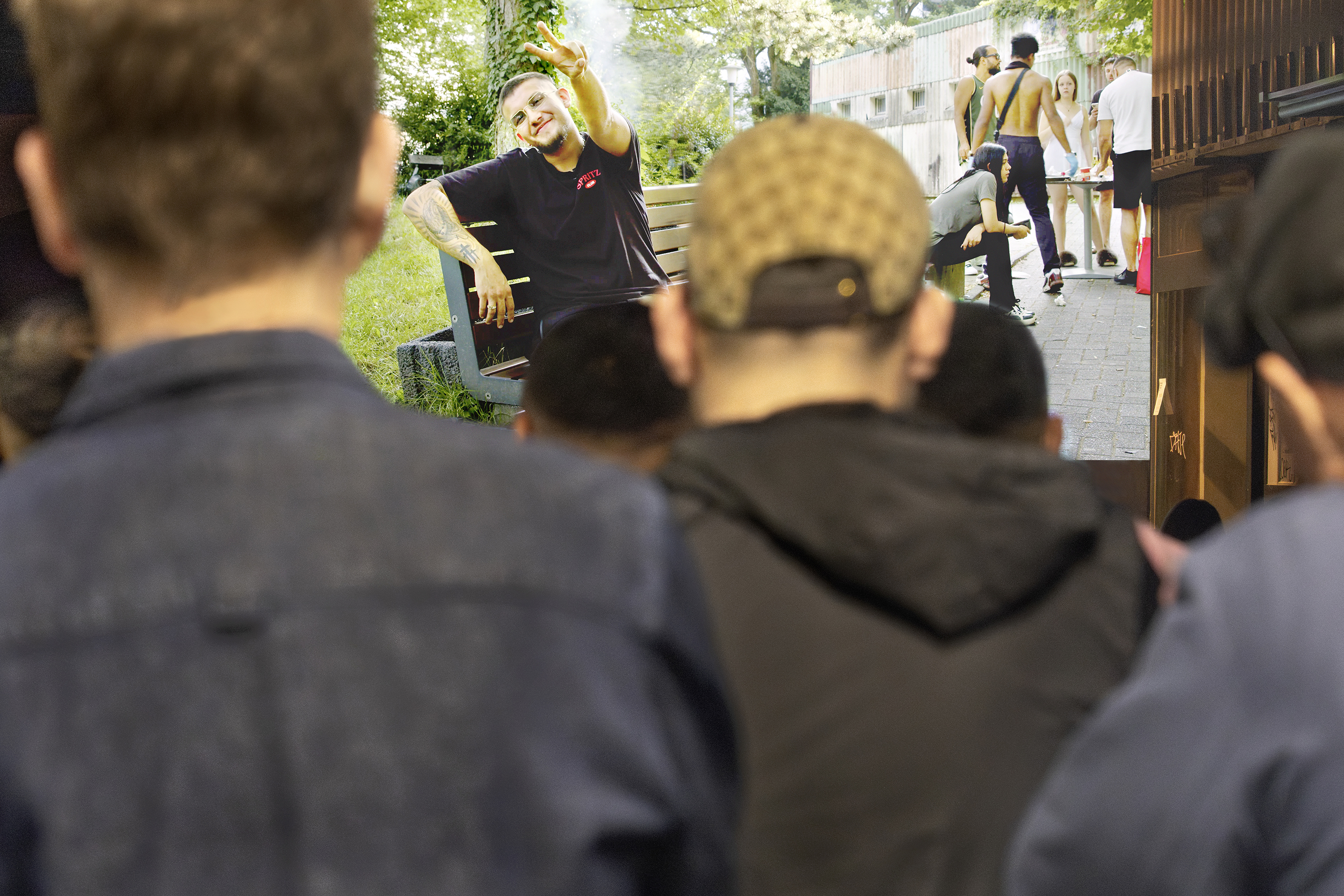 Am Samstag den 2. August 2025 kamen de Bewohner:innen des Schelmengrabens, Freunde und Interessierte zu einem kleinen Schelmengraben-Festival zusammen. Die Fotos von Daniel und Nico verwandelten die Passage in ein gemeinschaftliches Fotoalbum. Reza und die Crew vom M7 heizten den Grill an und sorgten für leckeres Barbecue und kalte Getränke, DJ Paco Ruga spielte den Soundtrack zur Szene, Der Rapper Maras, der im Viertel aufgewachsen ist und reflektierte mit seinen Tracks die Atmosphäre des Ortes.