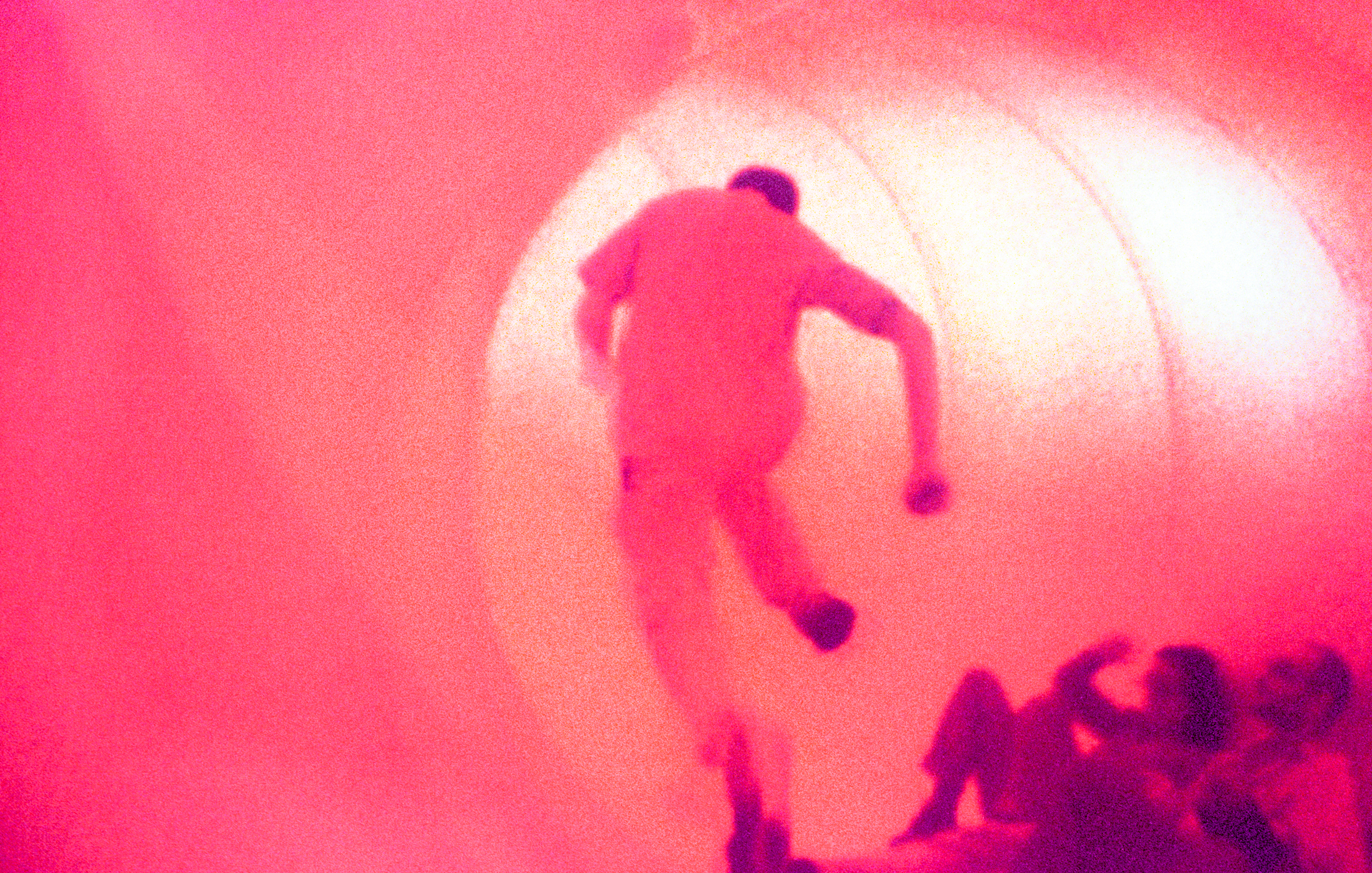 Sie befindet sich im Spannungsfeld eines massiven Soundsystems. Über die Lautsprecher werden in abwechselner Folge zwei Soundtracks eingespielt: