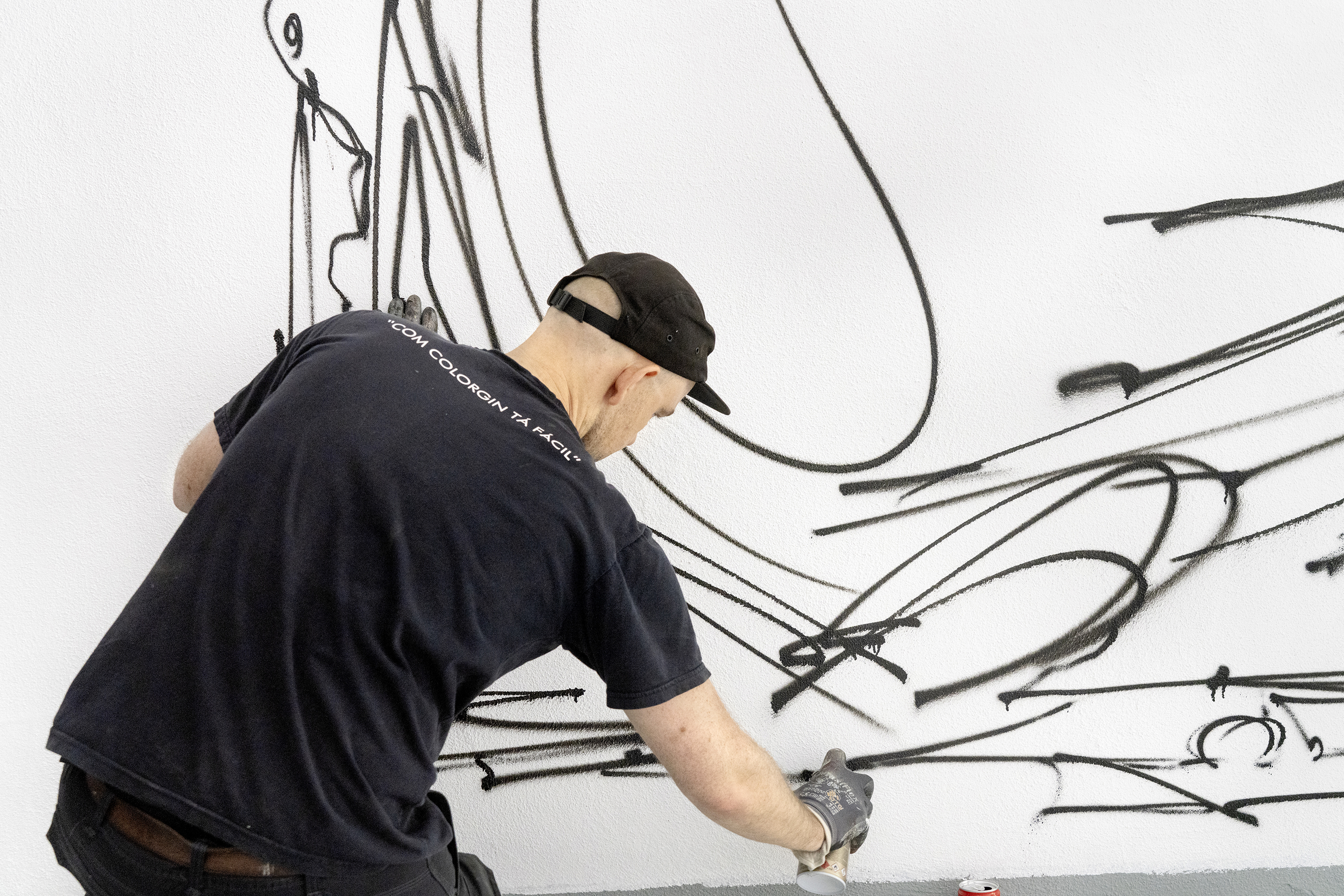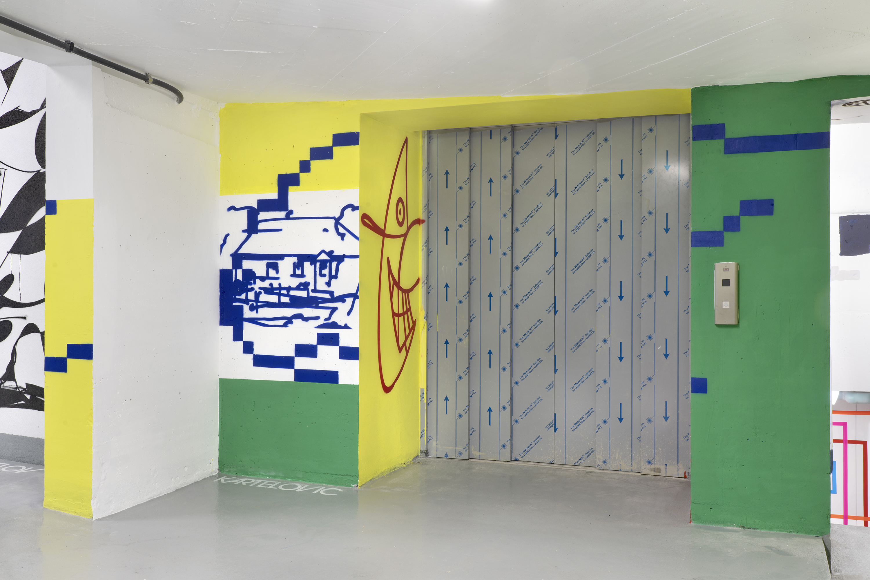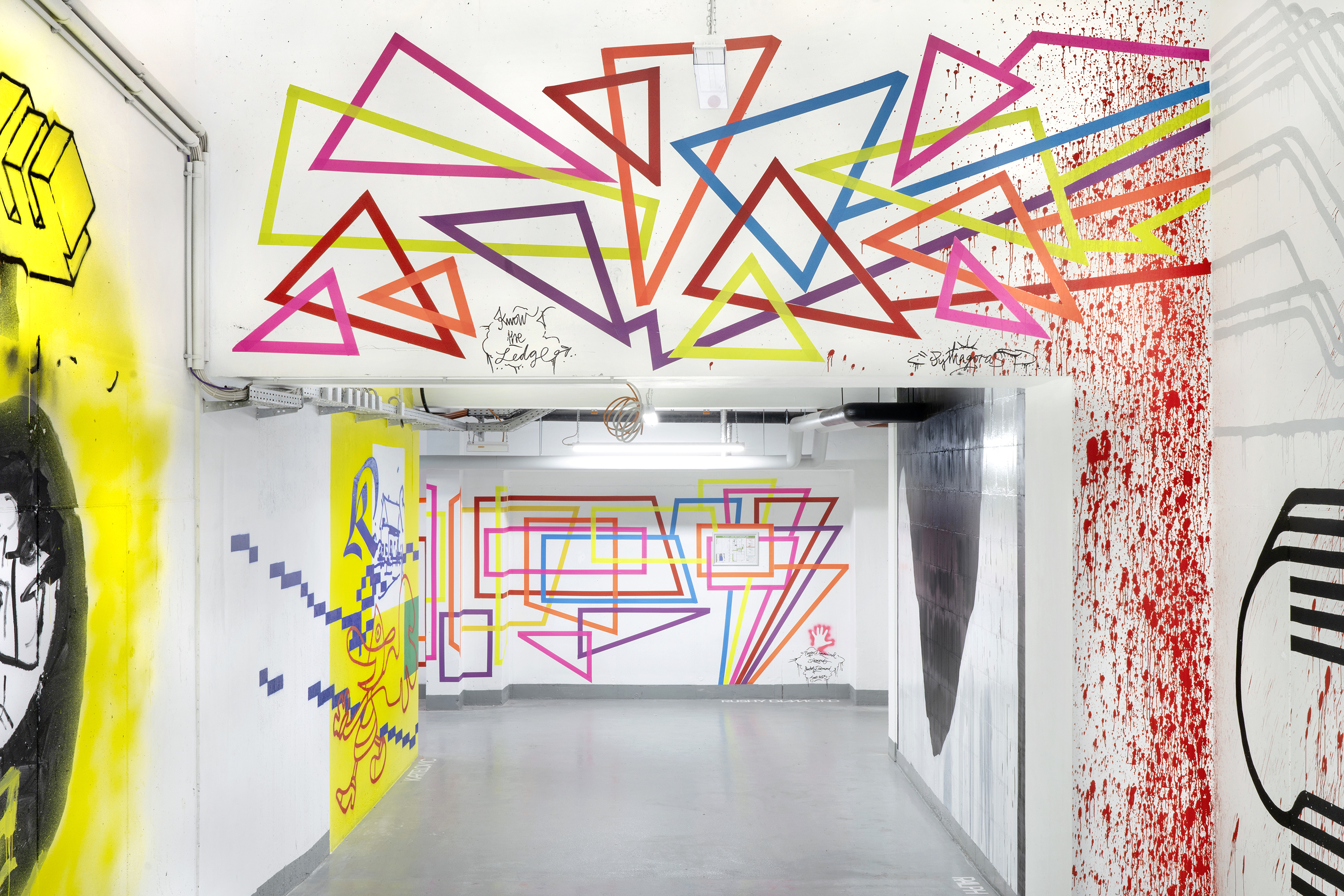 Vom 23.6.-23.7.2023 fand im zukünftigen Fahrradparkhaus der Stadt Offenbach mit der Wallshow eine von Heiner Blum, Jan Lotter und Robert Kaltenhäuser initierte und kuratierte Ausstellung zum Thema Wandmalerei statt.