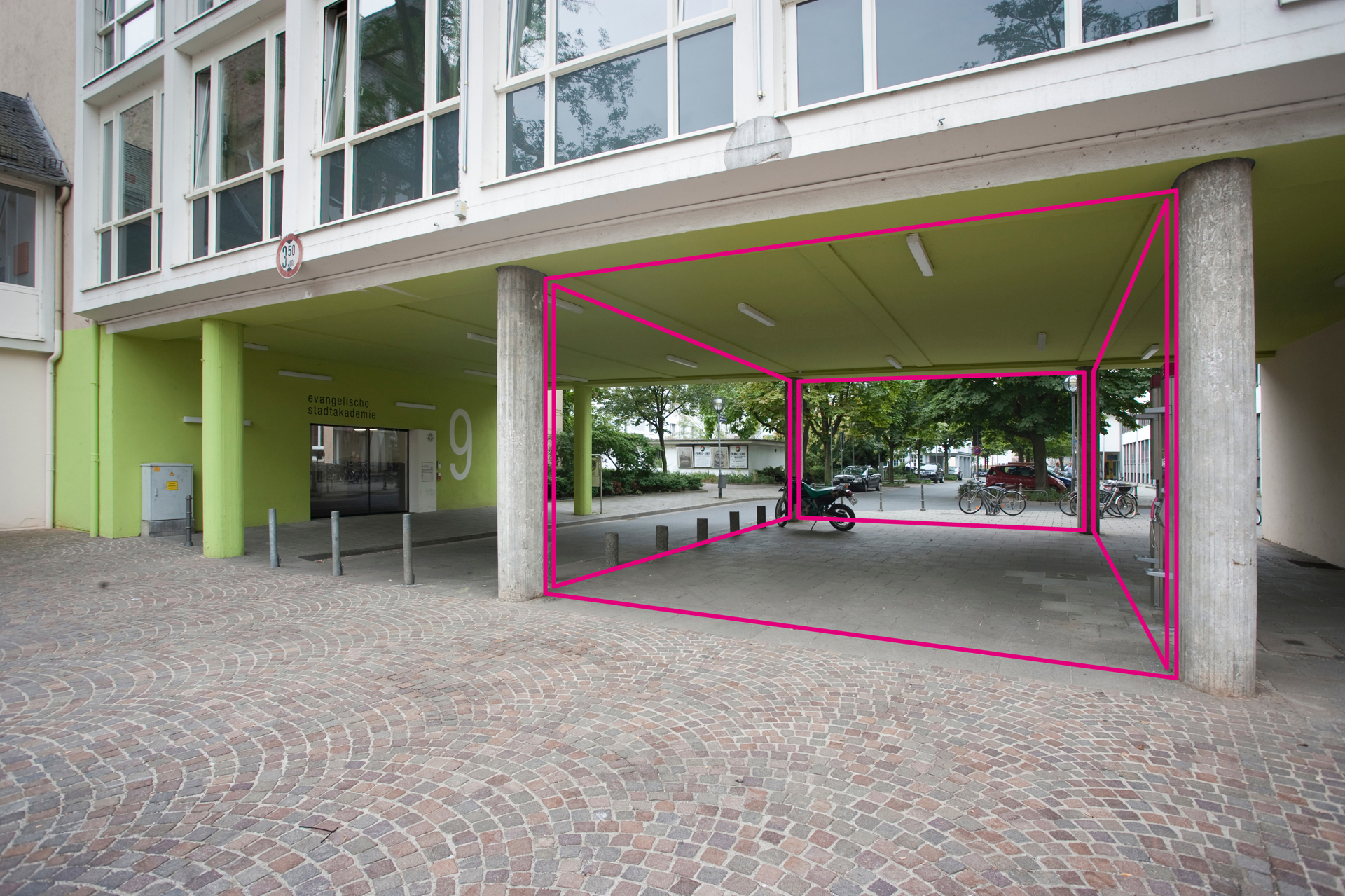 xqm erschloss in stark frequentierten Zonen, so genannten »1A-Lagen«, architektonische und städtebauliche Situationen, die keiner eindeutigen Funktion zugeordnet sind, aber durch räumliche Gegebenheiten, z.B. ein »Dach über dem Kopf«, das Potential für eine alternative Nutzung bieten.