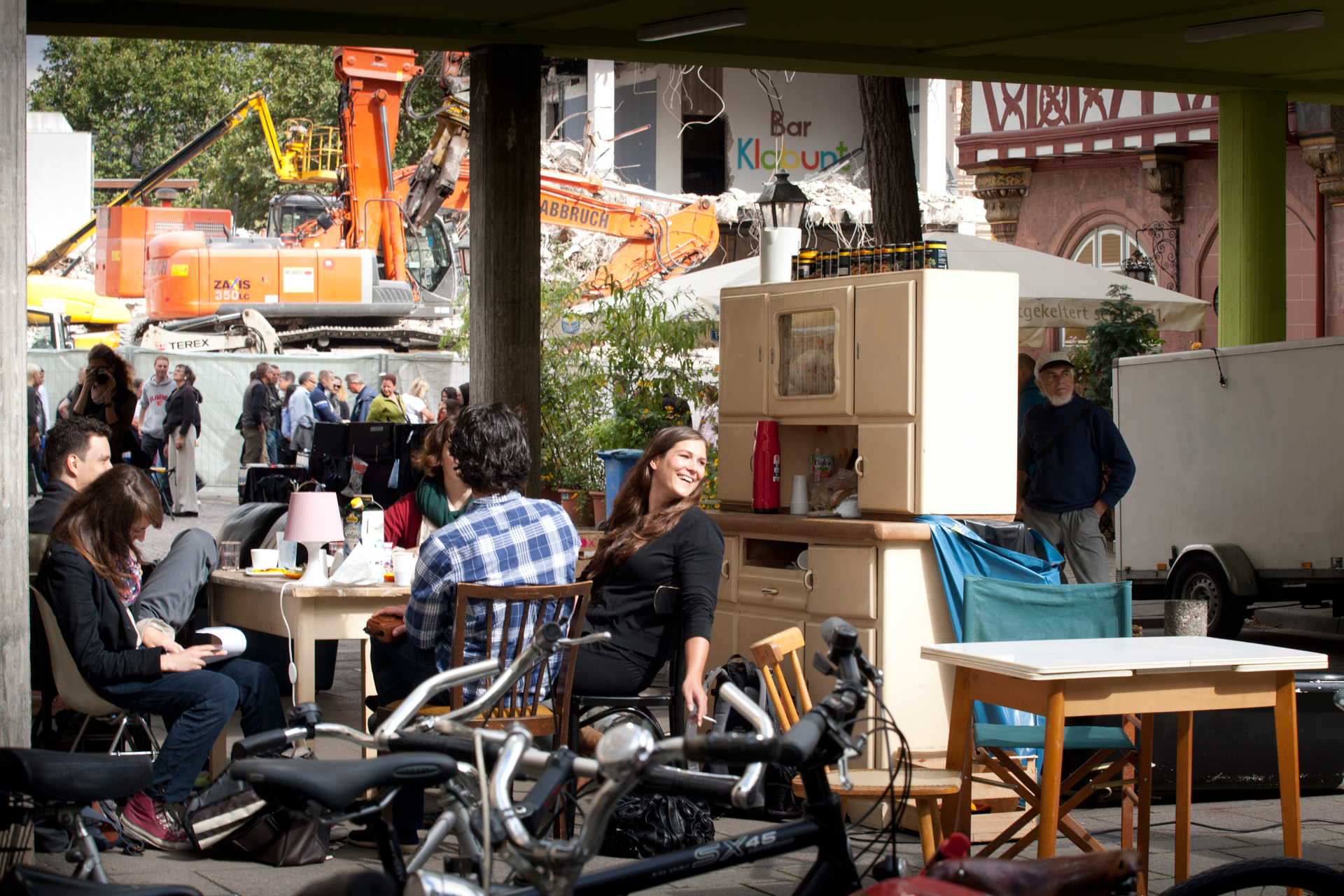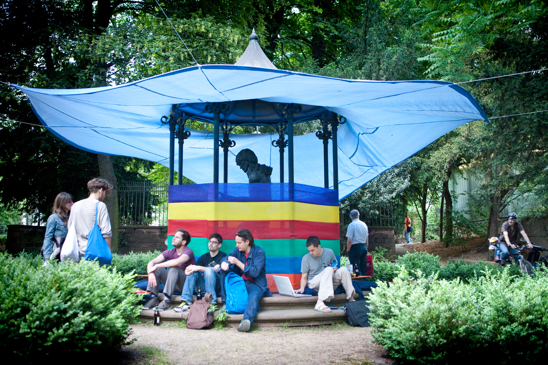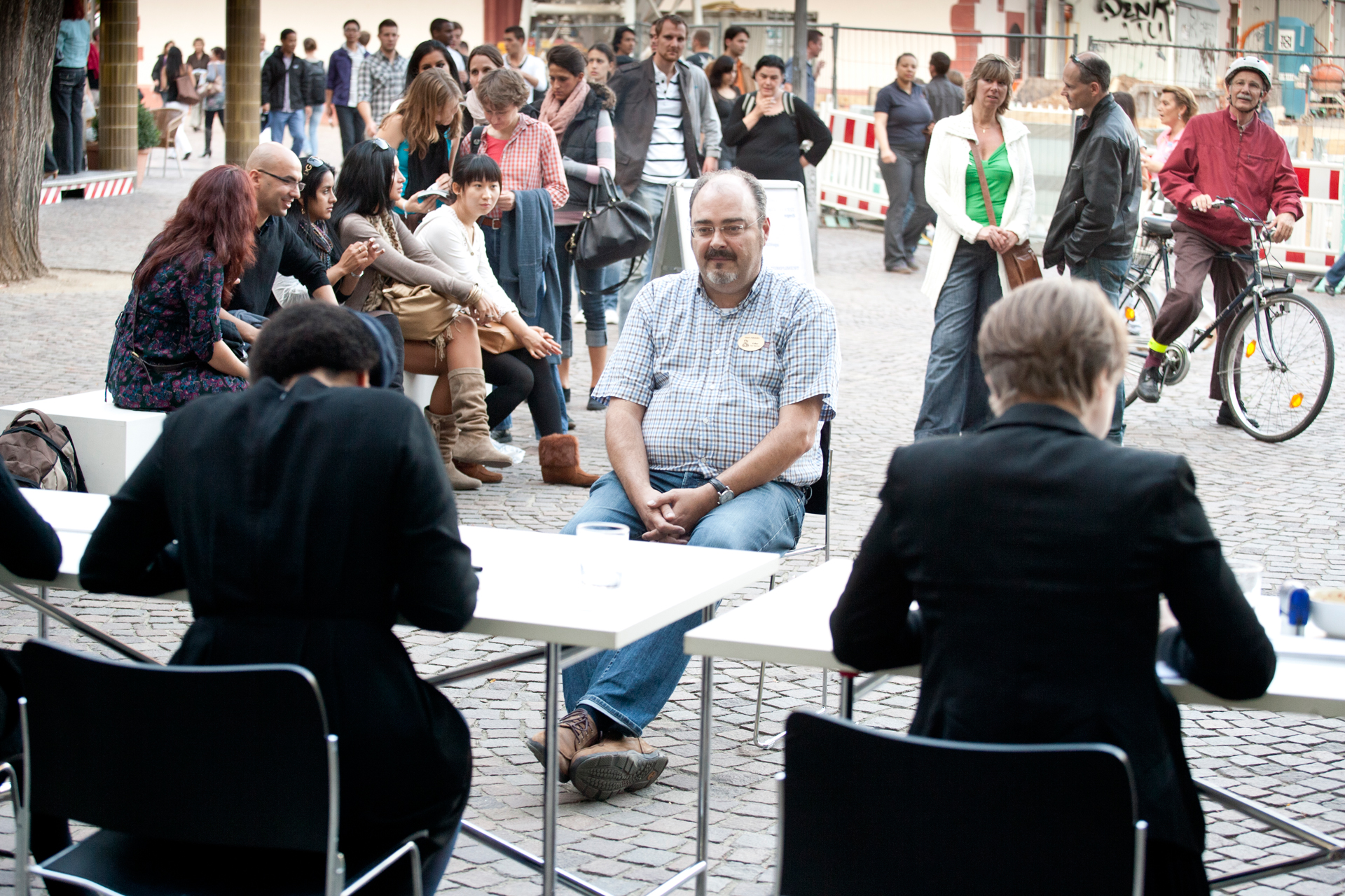 Von Mai bis Oktober 2011 realisierte xqm in fünf Blöcken insgesamt 54 Projekte im öffentlichen Raum der Frankfurter Innenstadt.