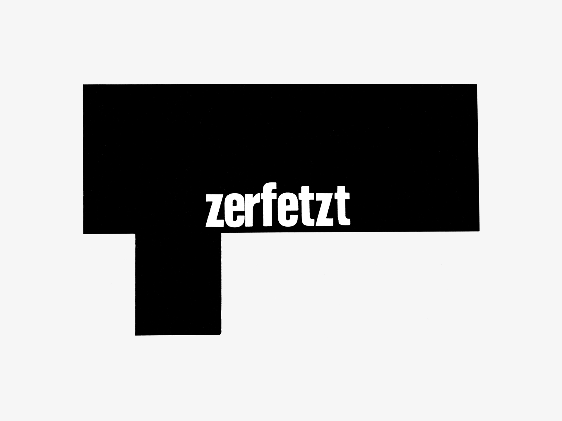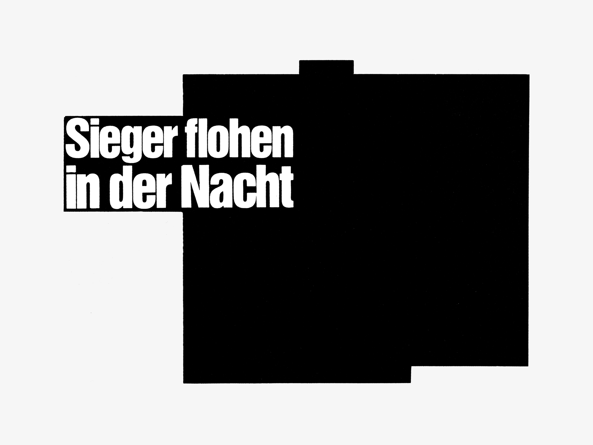 Sie stammten alle aus den Jahren 1982/83. Heiner Blum war damals 23 Jahre alt, studierte »Visuelle Kommunikation« in Kassel. Jeden Tag kaufte er Tageszeitungen der Boulevardpresse, unter anderem »Bild-Zeitung«, »Kölner Express«, »Abendzeitung« und »Express«. Er sammelte aber auch zurückliegende Ausgaben, die er im Sperrmüll fand. Meistens waren es die Schlagzeilen auf der ersten Seite, deren gesamtes Feld – also schwarzer Grund, weiße Buchstaben – er 1:1 kopierte. Er berücksichtigte nur die Worte, die ihn interessierten, den Rest übermalte er mit schwarzer Farbe. »Rest« heißt: das schwarze, geometrisch verwinkelte Feld, in dem sich die Schlagzeilen befanden. Dieses Feld schnitt er aus und montierte es auf einen Papierbogen. Somit waren zum einen harte, sehnsüchtige, brutale Emotionen sprachlicher Natur, zum anderen durch den ursprünglichen Gesamttext bestimmte Formen zu sehen. Ich zitiere mal einige der Worte, die einem in die Augen springen: »Hitler«, »Blutige Spur«, »Tote explodiert«, »ganz einsam«, »Ich«, »Sex«, »Leib«, »Schüsse«, »Mama, Mama!«, »Glück«, »Hoden«, »Tod«, »zerfetzt«, »Rache«, »Liebe«, »Alarm«, »Menschen im Feuer«, »alle tot«, »Plastikherz«, »Angst«, »Nr. 1«, »Hunderte weinten«, »Blutbad«, »Mann Frau«, »Enttäuschte Liebe« ...