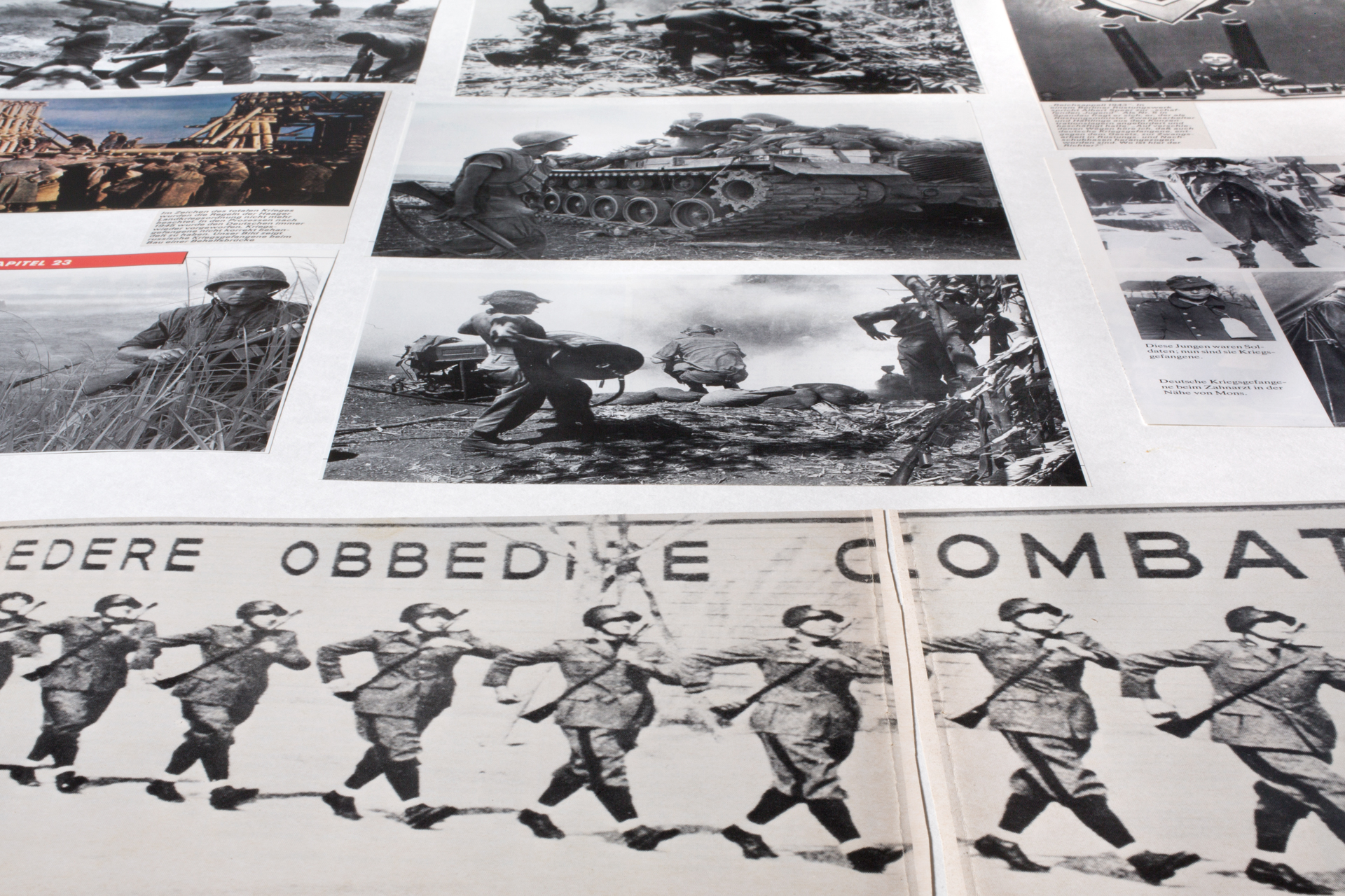 Die Arbeit mit verschiedenen, eigenen Bildarchiven steht im Mittelpunkt vieler Werke und Werkgruppen Heiner Blums. Seit Anfang der 1980er Jahre ordnete der Künstler Bilder in verschiedenen Archiv-Strukturen: Aus Büchern, Katalogen und Zeitschriften entstand eine Bibliothek; Logos, Grafiken und Ausschnitte von Verpackungen wurden auf A3-Kartons gesammelt; Dias in A4-Kunststoff-Boxen geordnet; Zeichnungen wurden in Hängeordnern zusammengefasst; Zeitungs- und Buchausschnitte zunächst in Alben, dann auf 70x100 Kartons zusammengestellt. Schon Mitte der 70er Jahre tapezierte HB sein Jugendzimmer fast nahtlos mit Ausschnitten aus Zeitschriften; einige dieser Bilder fanden ihren Weg in die späteren Archive.