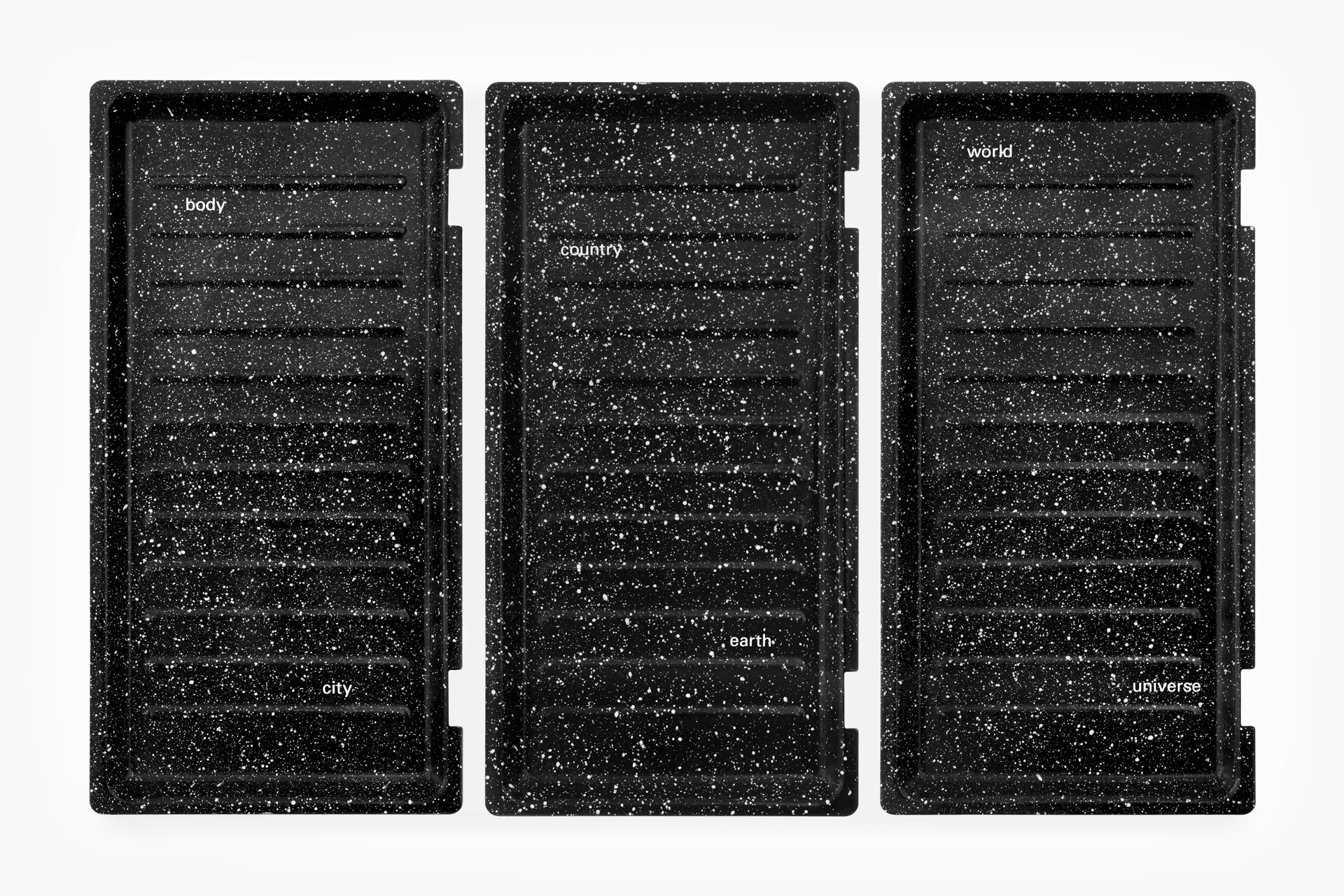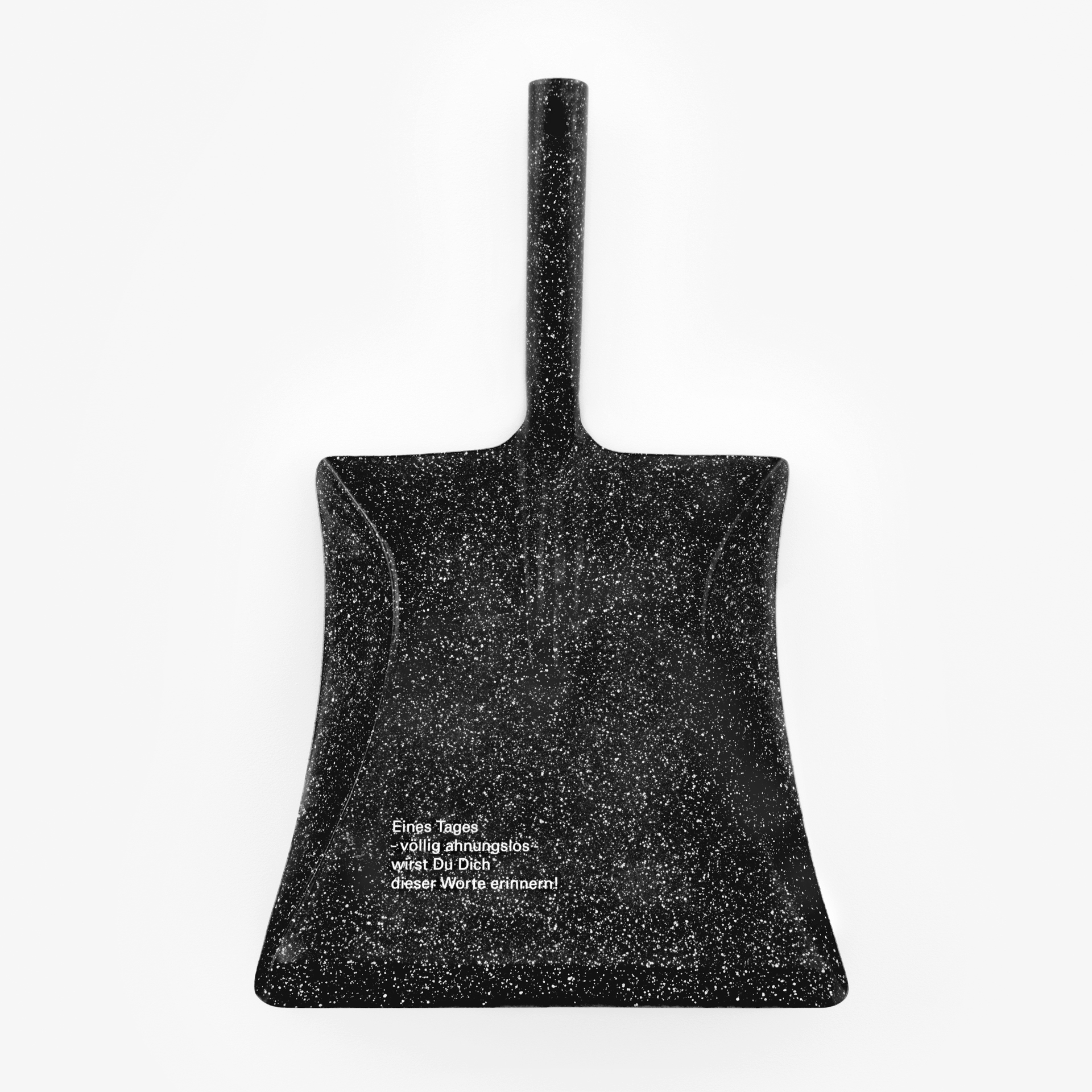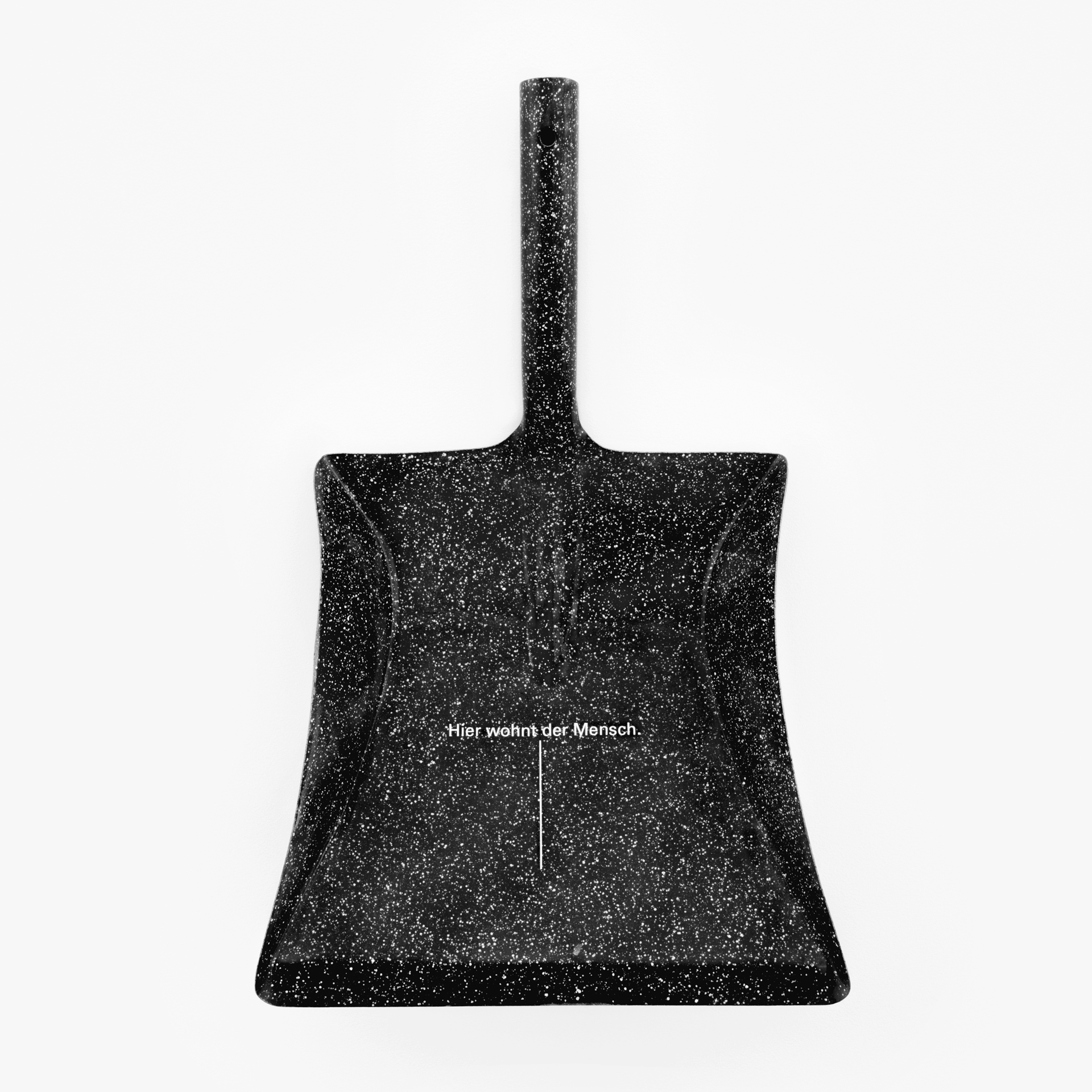 1983 erwarb der Künstler in Haushaltswarengeschäften der DDR Kehrschaufeln und Backbleche, die auf Grund ihrer Machart an stellare Konstellationnen erinnern. Über eine Transfertechnik wurden auf den Emaille-Oberflächen philosophisch-existentielle Botschaften platziert. Der Titel »Au Milieu Du Monde« bezieht sich auf einen Film des Schweizer Regisseurs Alain Tanner.