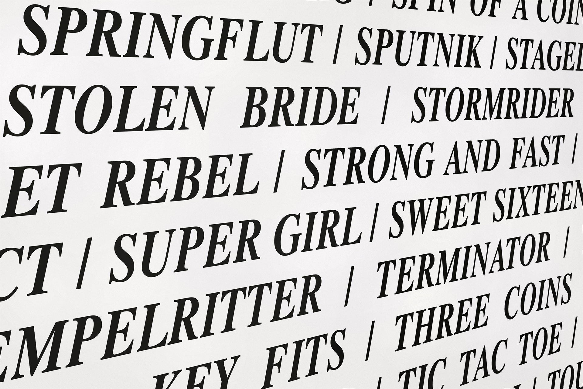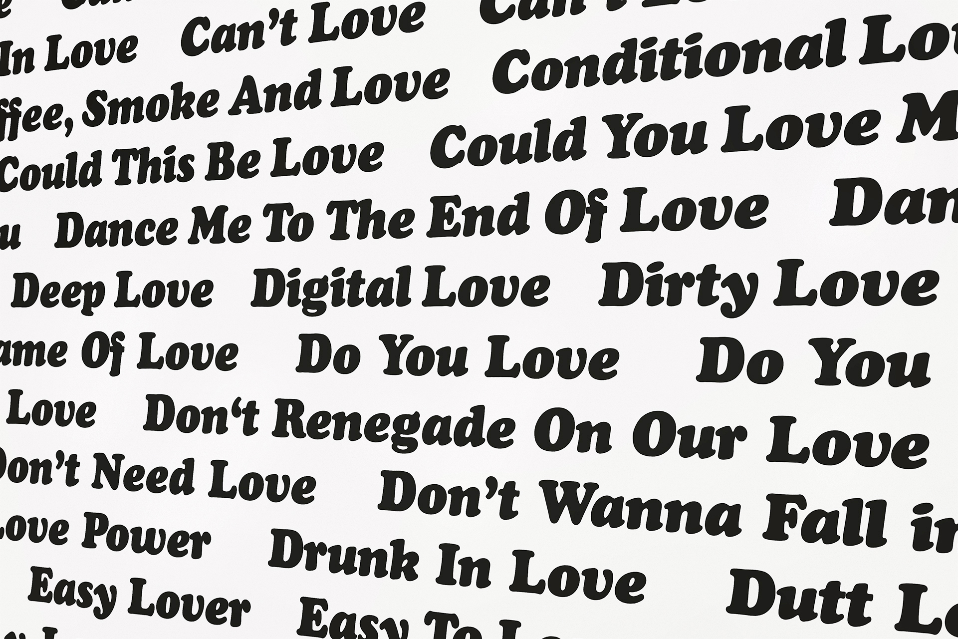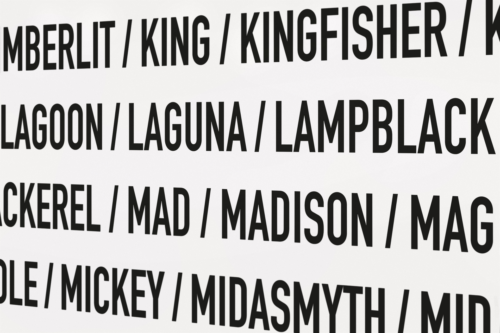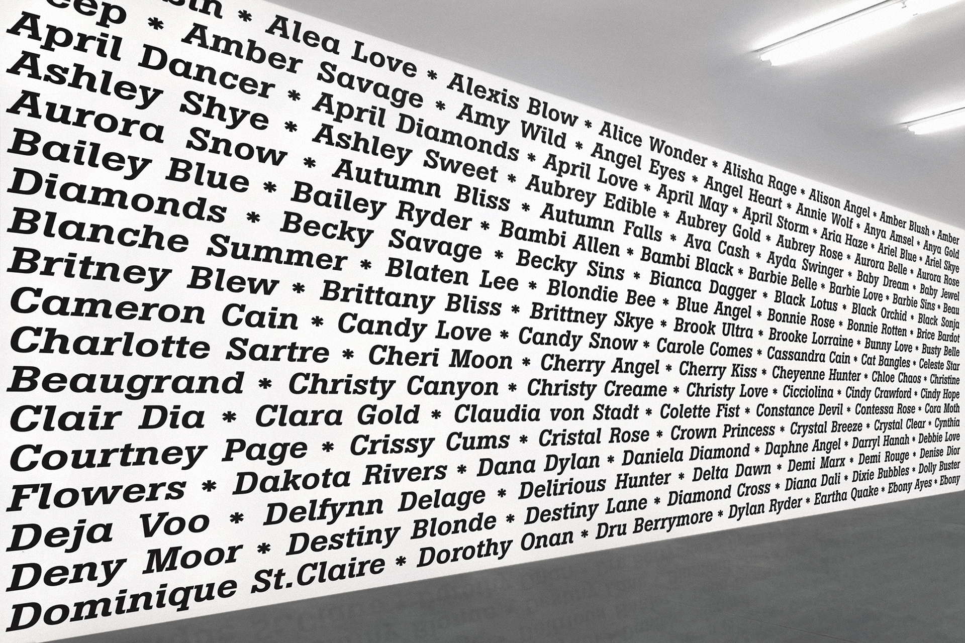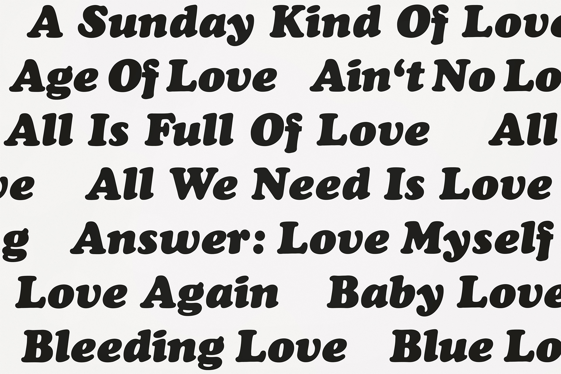 2020 realisiert Heiner Blum im KNSTVRN Bad Wonder in einer umfangreichen, aufwändigen Ausstellung gleich sechs raumumfassende Textinstallationen auf der Basis von Listen: »Love Songs«, »Nebenwirkungen«, »Thoroughbreds«, »The Thes«, »Pornstars« und das »Nuclear Weapon Archive«. Die »Love Songs« finden sich nicht nur im Treppenhaus des Kunstvereins sondern auch in einer Auswahl an der Außenhaut des Kunstmuseums Bad Wonder.