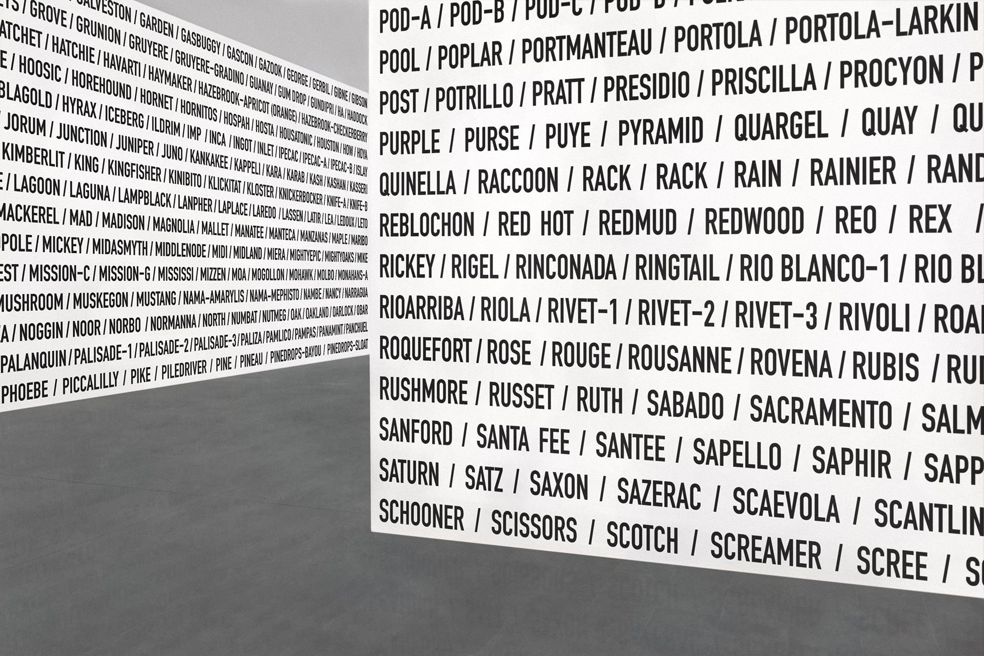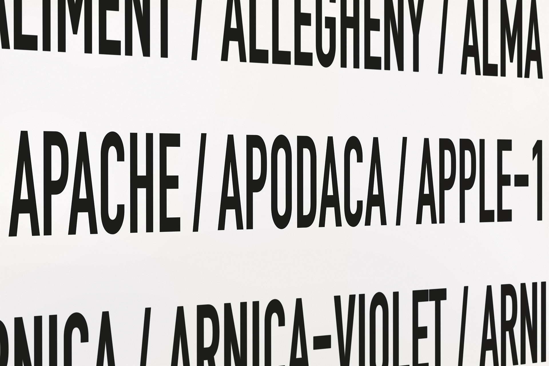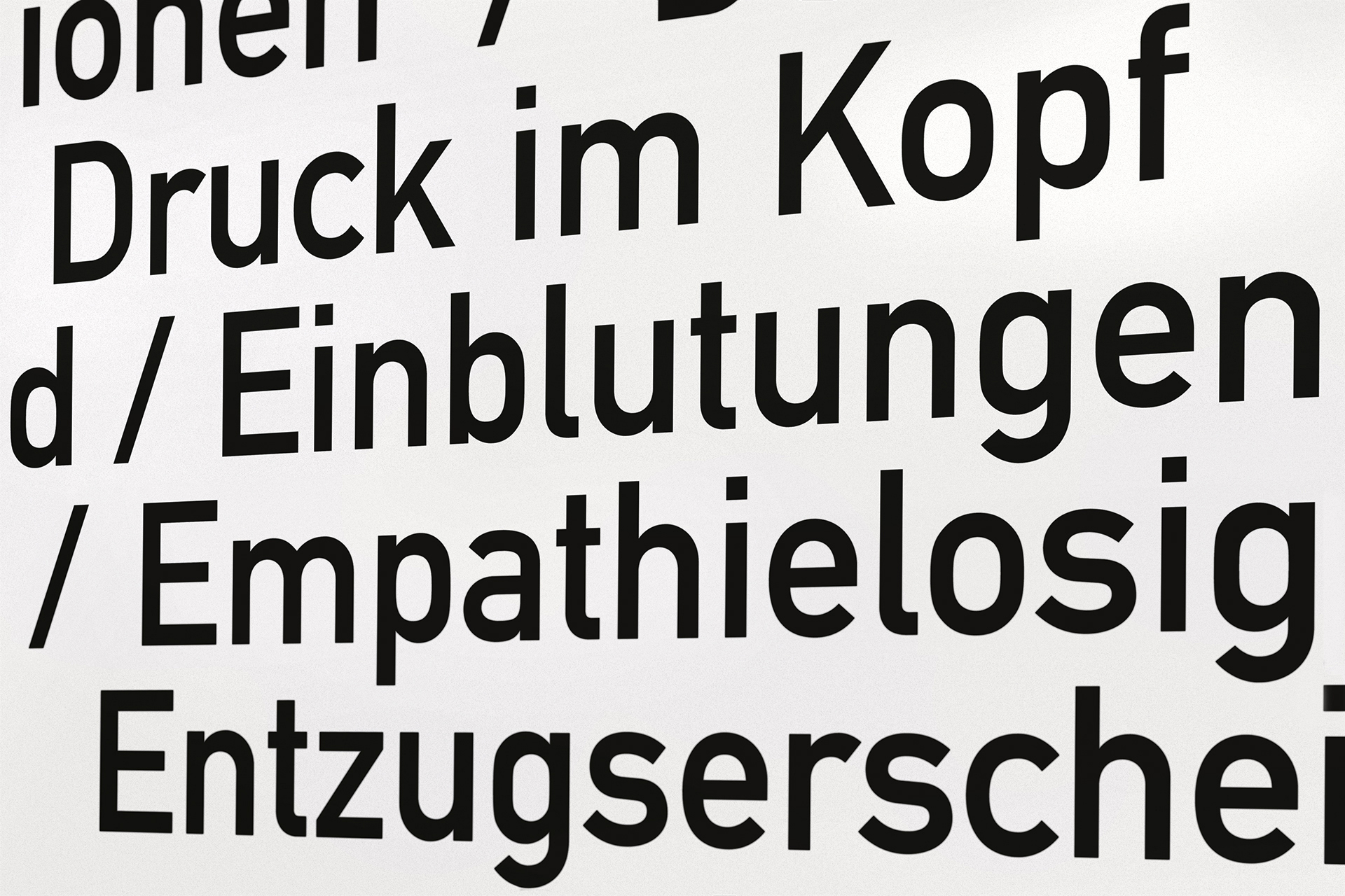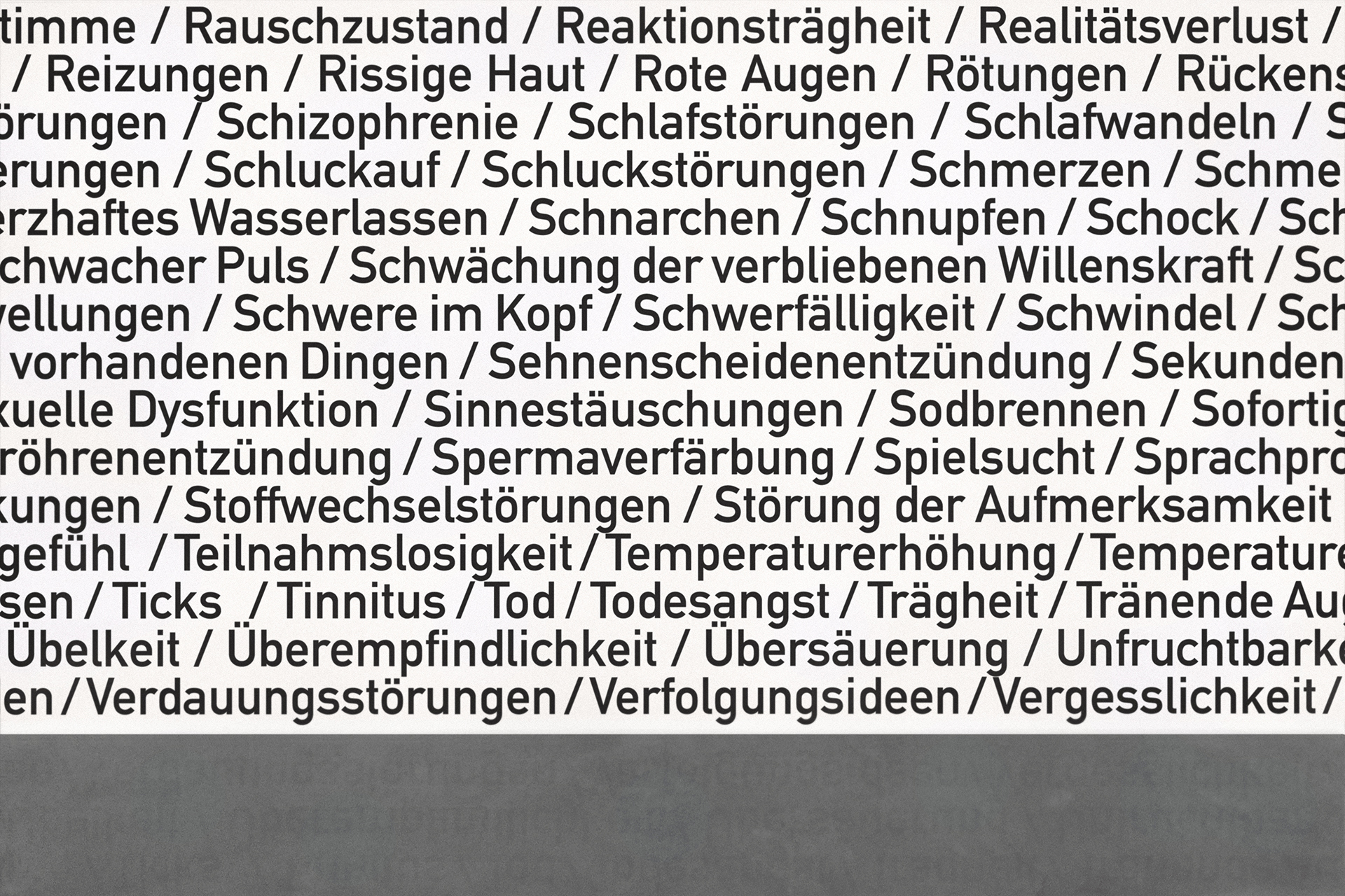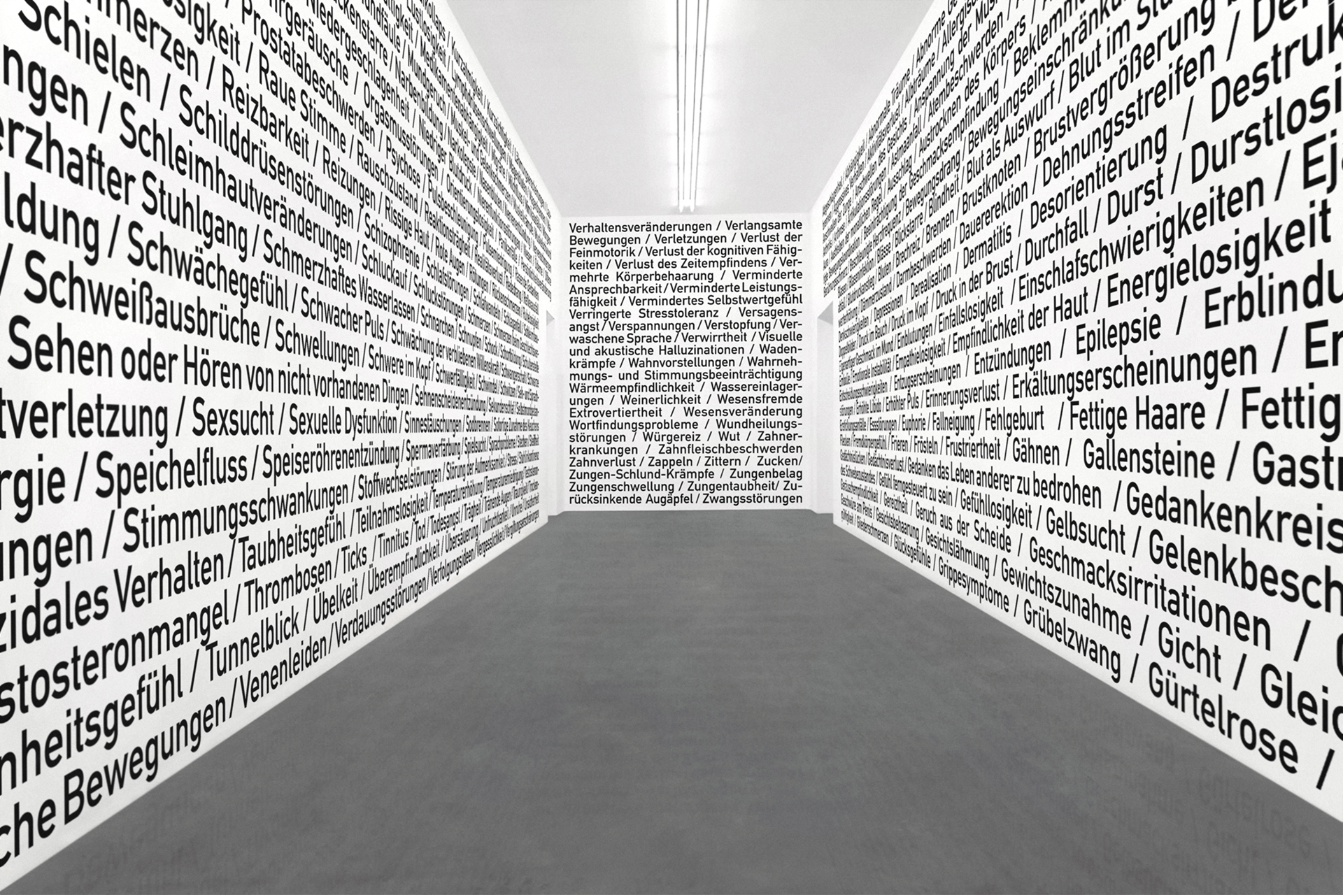 Die von Heiner Blum seit 1999 gesammelten Listen waren von Anfang an als Wandinstallation gedacht, bisher wurde aber nur 2015 mit »Strings Of Life« eine solche Textinstallation im »Offenbacher Institut für Klangforschung« umgesetzt.
