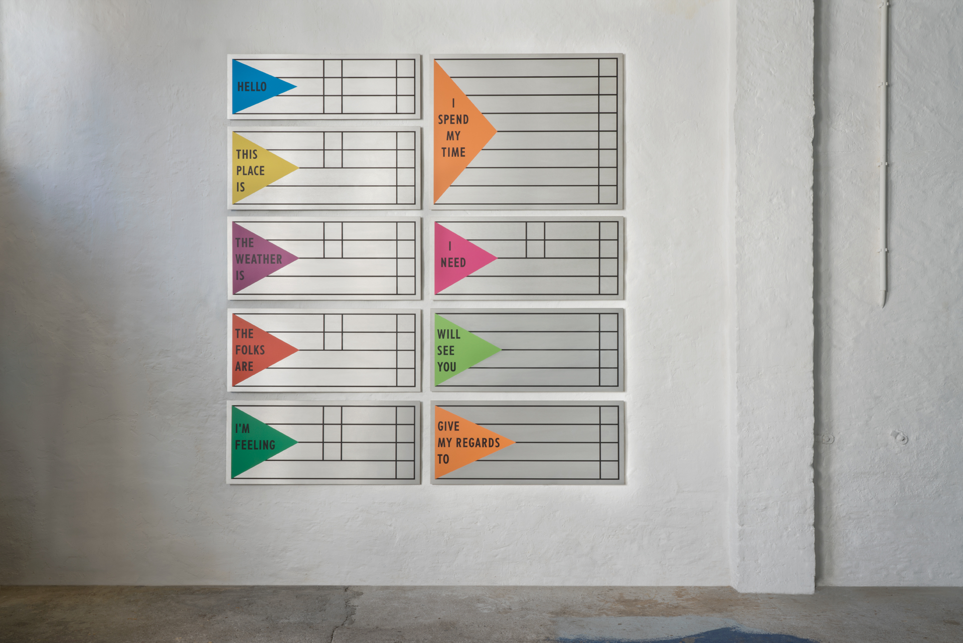 1982 fiel dem Künstler eine Postkarte aus New York von 1964 in die Hände, die einen besonderen Service anbot: Der Absender der Karte konnte durch Ankreuzen in graphisch gestalteten Optionsboxen seinen Aufenthalt in New York kommentieren. Heiner Blum machte hiervon im Jahr des Funds eine abstrahierte Zeichnung für eine Wandarbeit, die schließlich 2018 im UV-Druck auf Aluminium umgesetzt wurde.