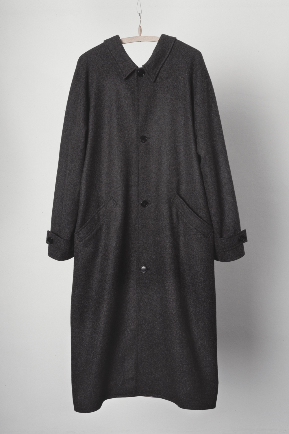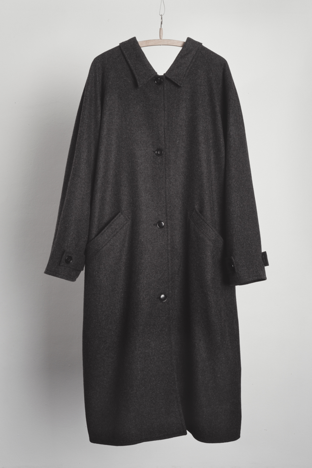 Gespiegelter, teilbarer Mantel aus Wollstoff mit Knopfleiste vorne und hinten